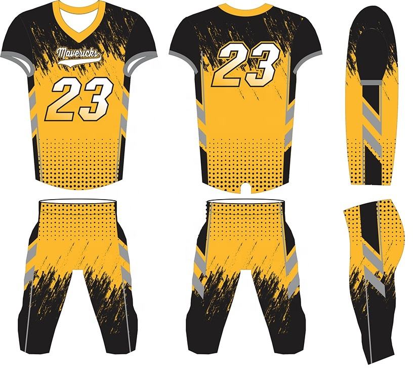 ชุดเสื้อและกางเกงฟุตบอลอเมริกันแบบสั่งทำขายส่ง พร้อมแขนสั้น ป้องกันรังสียูวี พร้อมโลโก้และชื่อทีมตามสั่ง