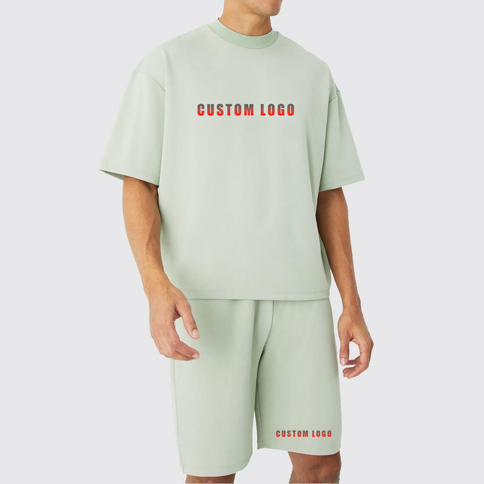 ชุดวอร์ม2ชิ้นสำหรับผู้ชายชุดวอร์มสั้นผ้าฝ้าย100% พิมพ์โลโก้สีตัดกันออกแบบได้ตามต้องการสำหรับฤดูร้อน