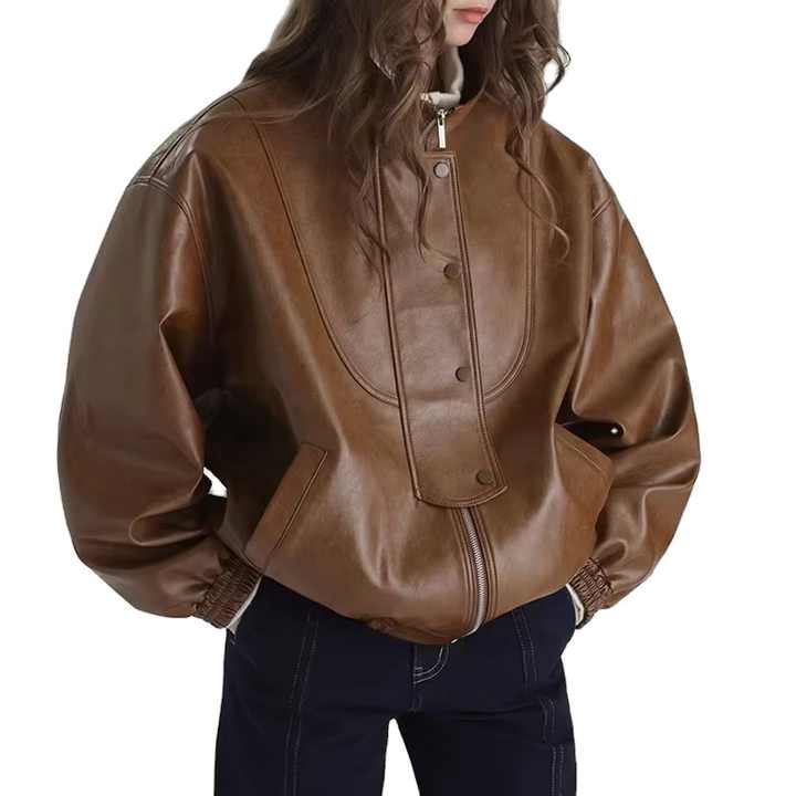 แจ็คเก็ตหนังแกะคุณภาพสูงสำหรับผู้หญิง ผลิตตามสั่งขายส่ง พร้อมกระเป๋าขนาดใหญ่ ออกแบบตามสั่ง ODM