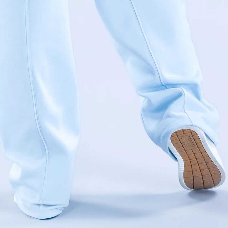 ผู้ผลิตขายส่ง กางเกงวอร์มขายาวทรงหลวมสีฟ้าชอล์ค ผ้าเทอร์รี่ฟลีซสำหรับผู้หญิง กางเกงและกางเกงขายาวผู้หญิง