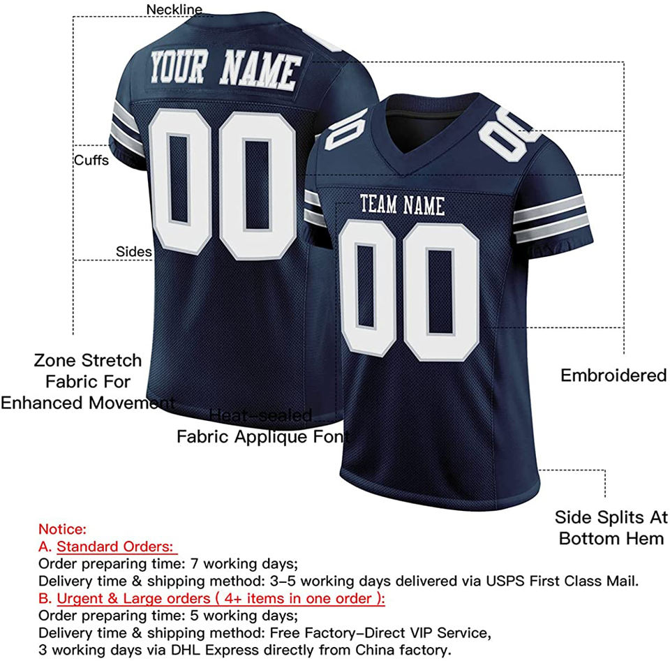 ชุดเสื้ออเมริกันฟุตบอลแบบสั่งทำขายส่งสำหรับทุกเพศ | ชุดทีมกีฬาแขนสั้น 100% โพลีเอสเตอร์ ระบายอากาศได้ดี สำหรับนักศึกษา