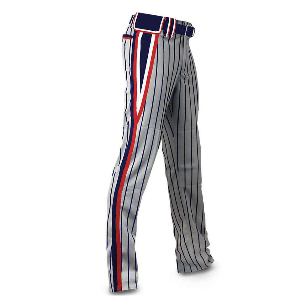 กางเกงเบสบอลสีเทาผ้าโพลีเอสเตอร์ 100% แบบซับลิเมชั่นสั่งทำขายส่งสำหรับชุดทีมกีฬาและการฝึกซ้อม ทนทาน