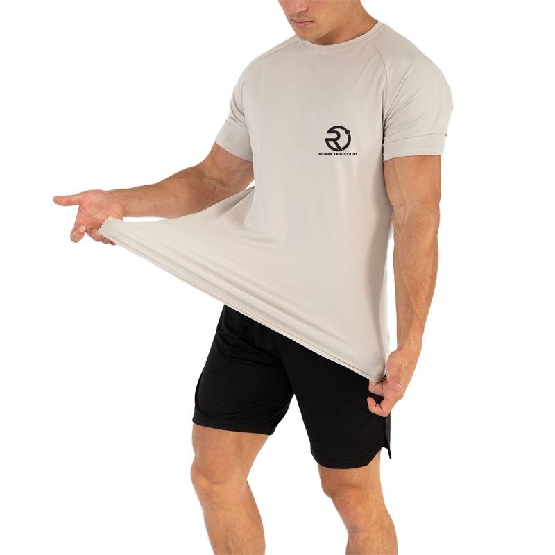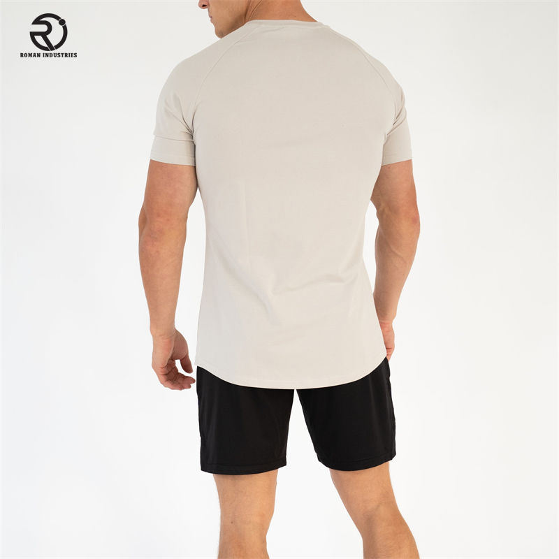 เสื้อยืดผู้ชายผ้าฝ้ายโพลีเอสเตอร์เนื้อแข็งสำหรับฟิตเนสยิมฟิตเนสยิมออกแบบได้ตามต้องการ
