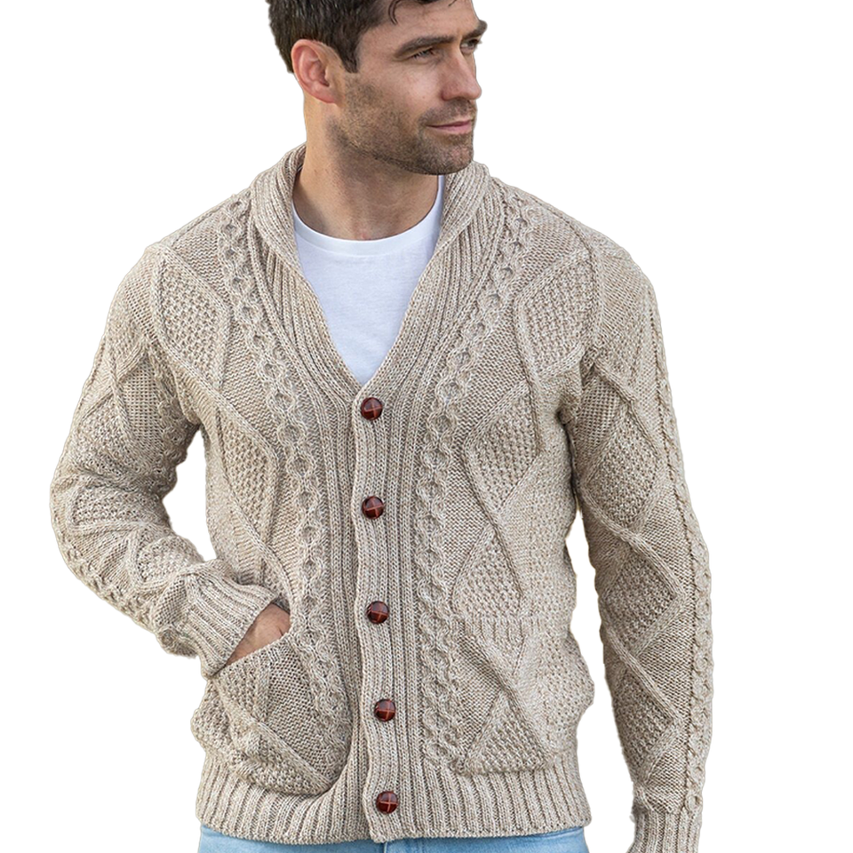 Wholesale Custom Men V Neck Cable Knit Cardigan Sweater Knitted Shawl Collar Button Coat Winter Casual Style