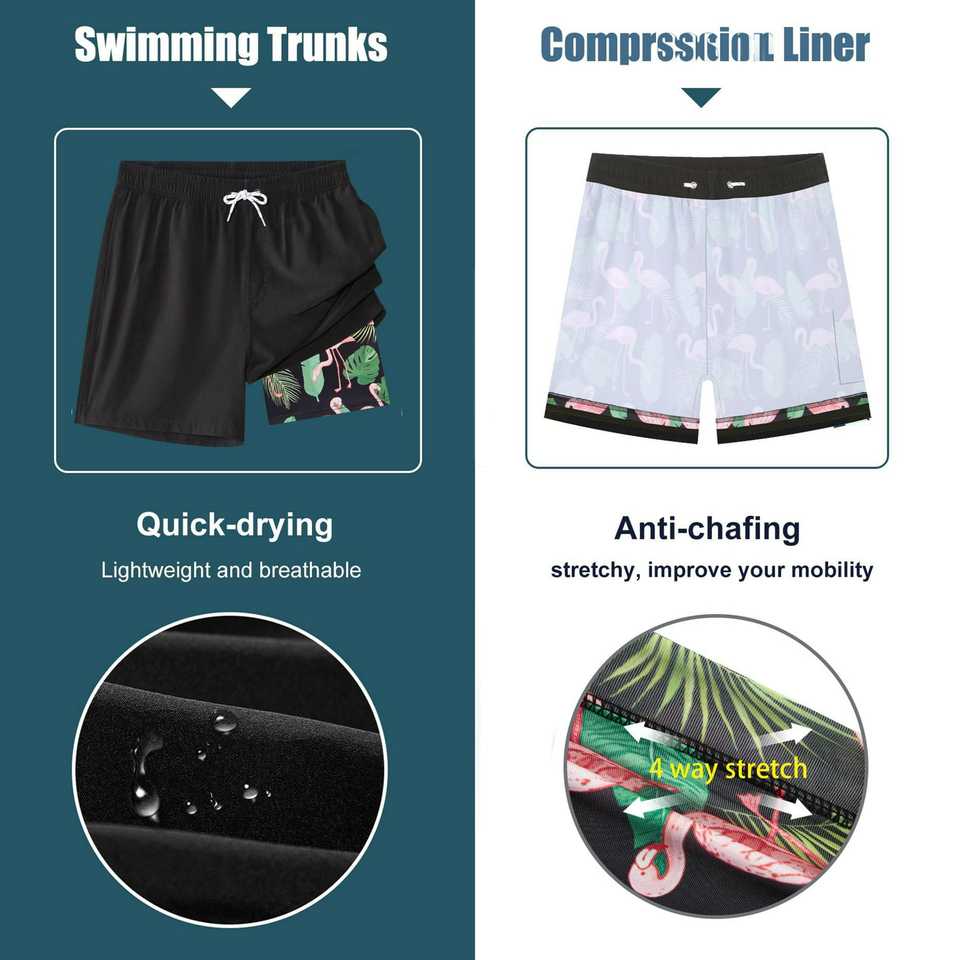 กางเกงขาสั้นเล่นกระดานโต้คลื่นของผู้ชายแบบแห้งเร็วกางเกงขาสั้นชายหาดแบบยืดได้4ทางเอวสูงไร้สายระบายอากาศได้ดี