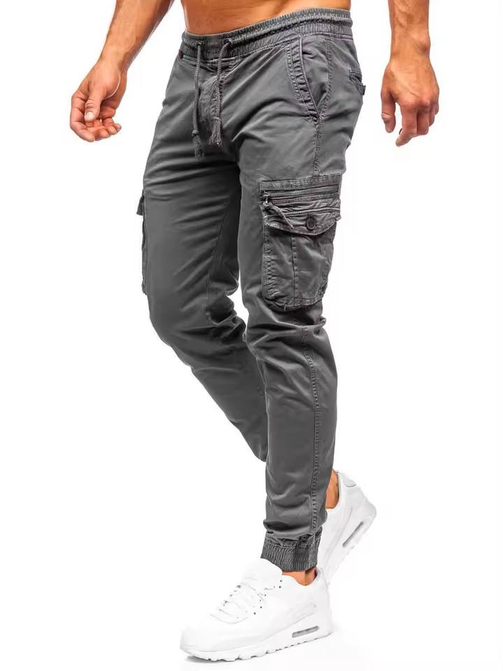 กางเกงวิ่งขายาวมีเชือกรูดสำหรับผู้ชายกางเกงออกกำลังกายแบบลำลองทำจากผ้าฝ้ายสไตล์ใหม่