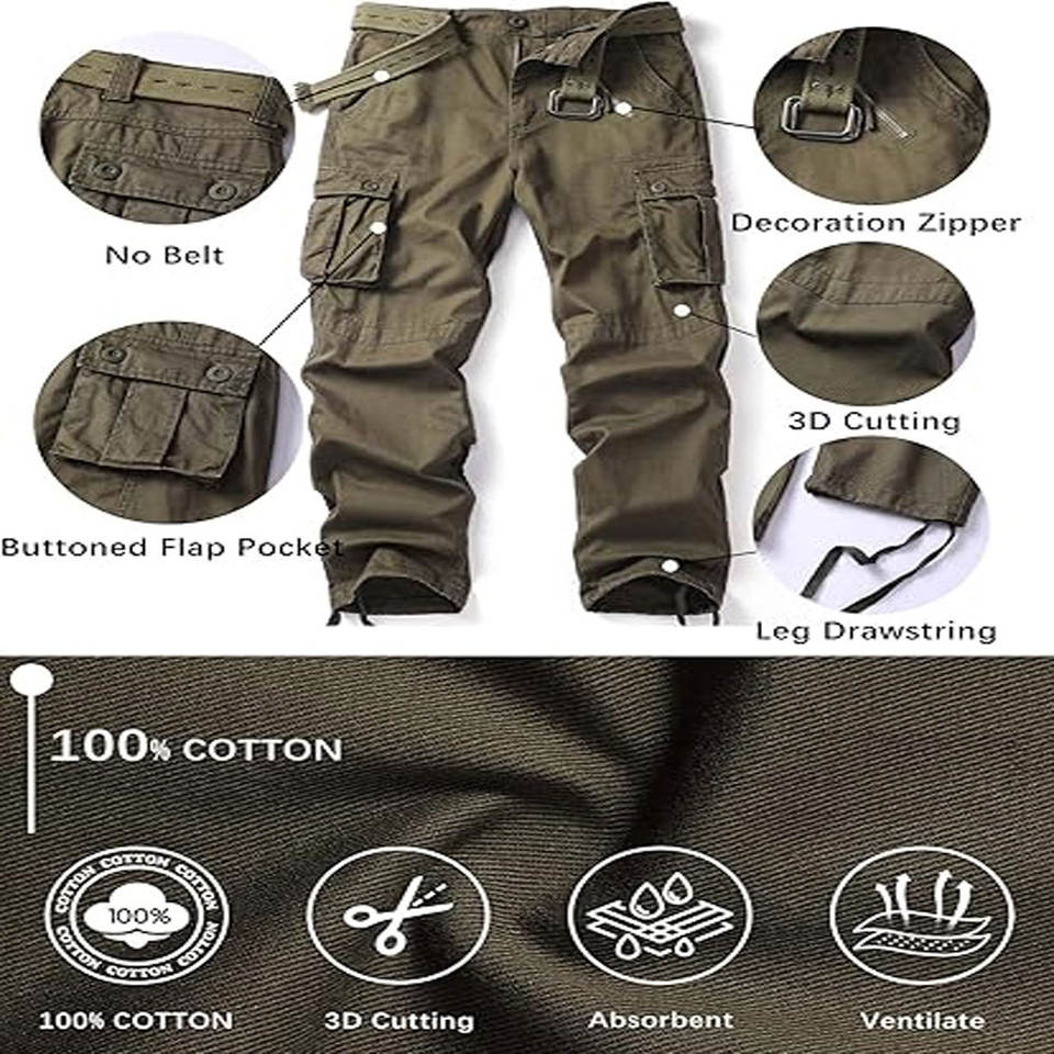 กางเกงคาร์โก้ผู้ชายน้ำหนักเบามีกระเป๋าข้างมีกระเป๋าข้างผ้าฝ้ายเอวสูงสไตล์ลำลองระบายอากาศ
