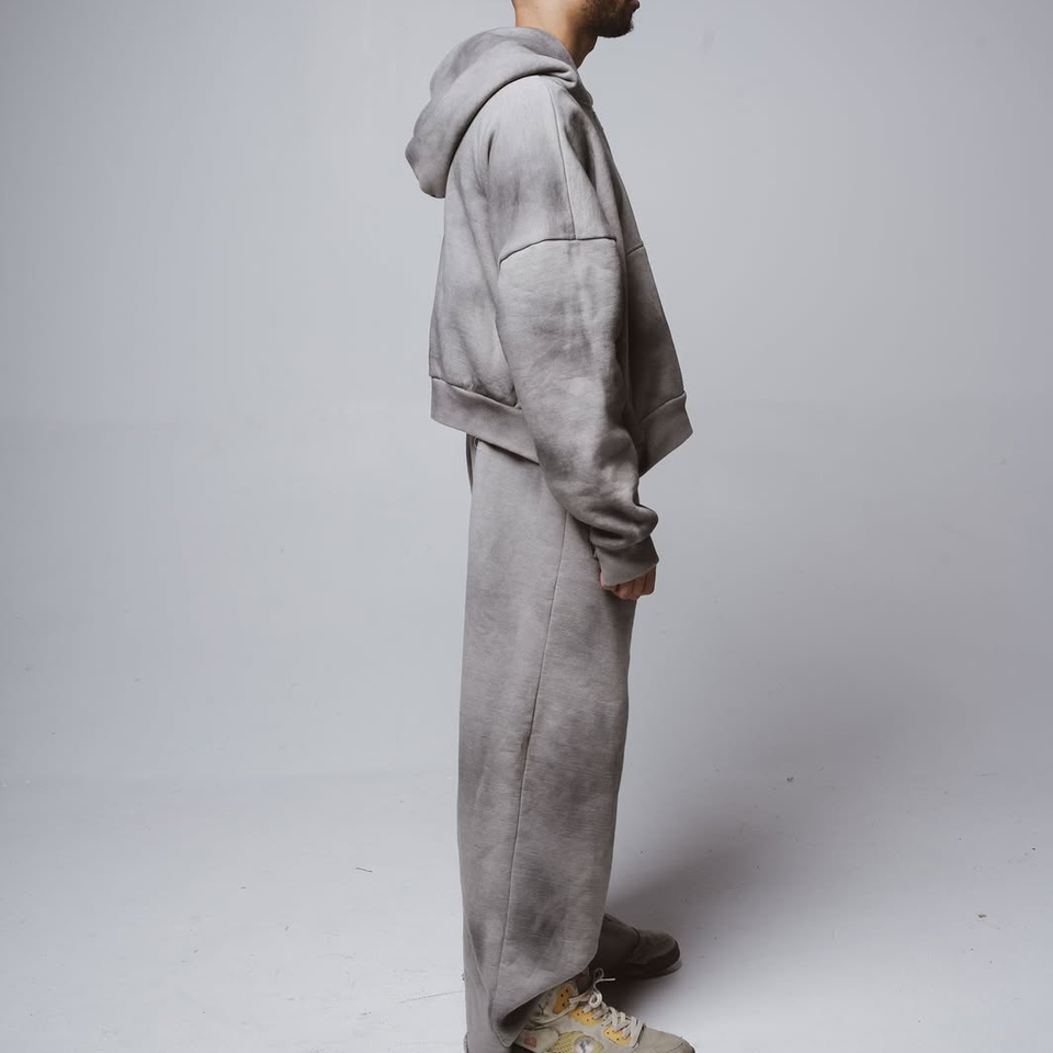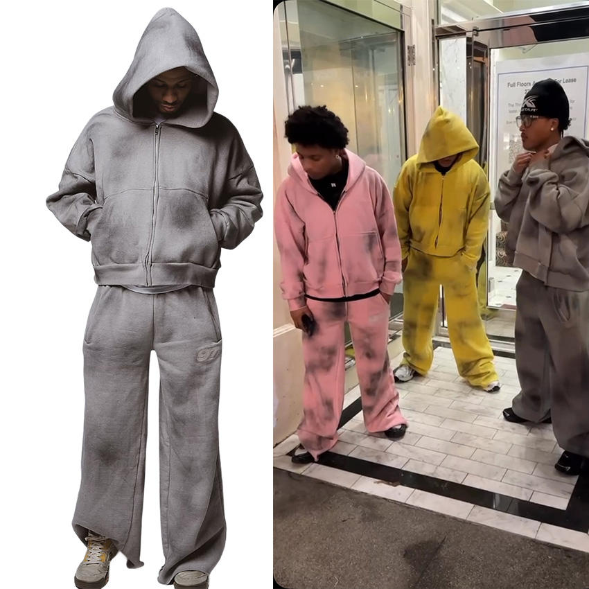 ชุดวอร์มผ้าฝ้ายโอเวอร์ไซส์สำหรับผู้ชายชุดกางเกงมีฮู้ดพิมพ์ลายมีซิป