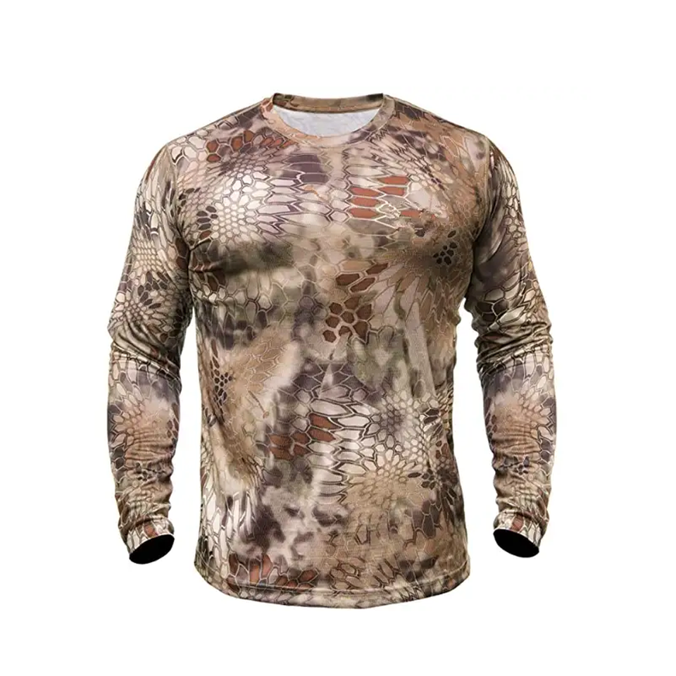 Wholesale Custom Men's Fishing T-shirt Polyester Cotton Anti UV UPF50+ Long Tactical Uniform Camouflage