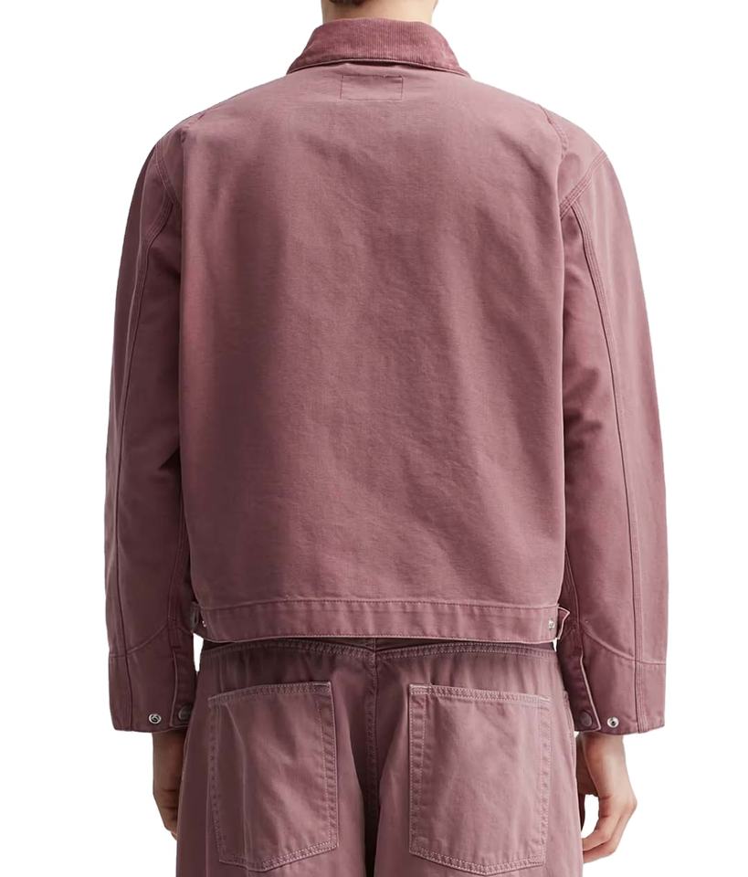 เสื้อแจ็คเก็ตทำงานสไตล์ฝรั่งเศสสำหรับผู้ชายแบบขายส่งสั่งทำได้, เสื้อโค้ทผ้าทวิลสีชมพู OEM ทนทาน เหมาะสำหรับงานหนัก ชุดยูนิฟอร์ม เสื้อคลุมทำงาน