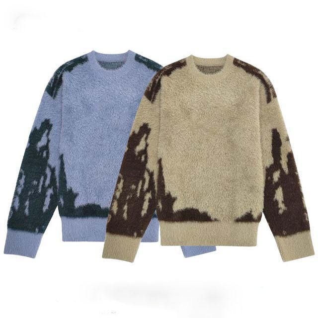 เสื้อสเวตเตอร์ไหมพรมถักสไตล์สตรีทแวร์ผู้ชายสั่งทำขายส่ง ทรงโอเวอร์ไซส์ คอวี ผ้าโมแฮร์ แฟชั่นฤดูใบไม้ร่วง ไม่หดตัว ลายเฮเธอร์ด้านหน้า