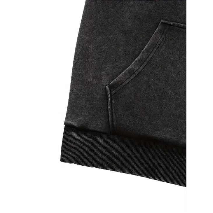 เสื้อฮู้ดสำหรับผู้ชายโอเวอร์ไซส์ซักแบบกำหนดเองพิมพ์ลายควันสีเทาวินเทจพร้อมกระเป๋าสำหรับฤดูหนาว
