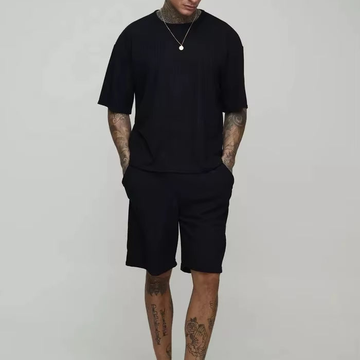 ชุดวอร์มแบบสวมหัวสำหรับผู้ชายกางเกงขาสั้นเนื้อผ้าขนาดใหญ่สำหรับผู้ชายชุดวอร์มแบบลำลองระบายอากาศได้คุณภาพระดับพรีเมียม