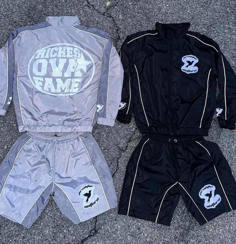 เสื้อแจ็กเก็ตกันลมผ้าไนลอน2ชิ้นสำหรับผู้ชายชุดวอร์มกางเกงวิ่งออกกำลังกายกำหนดเอง100%