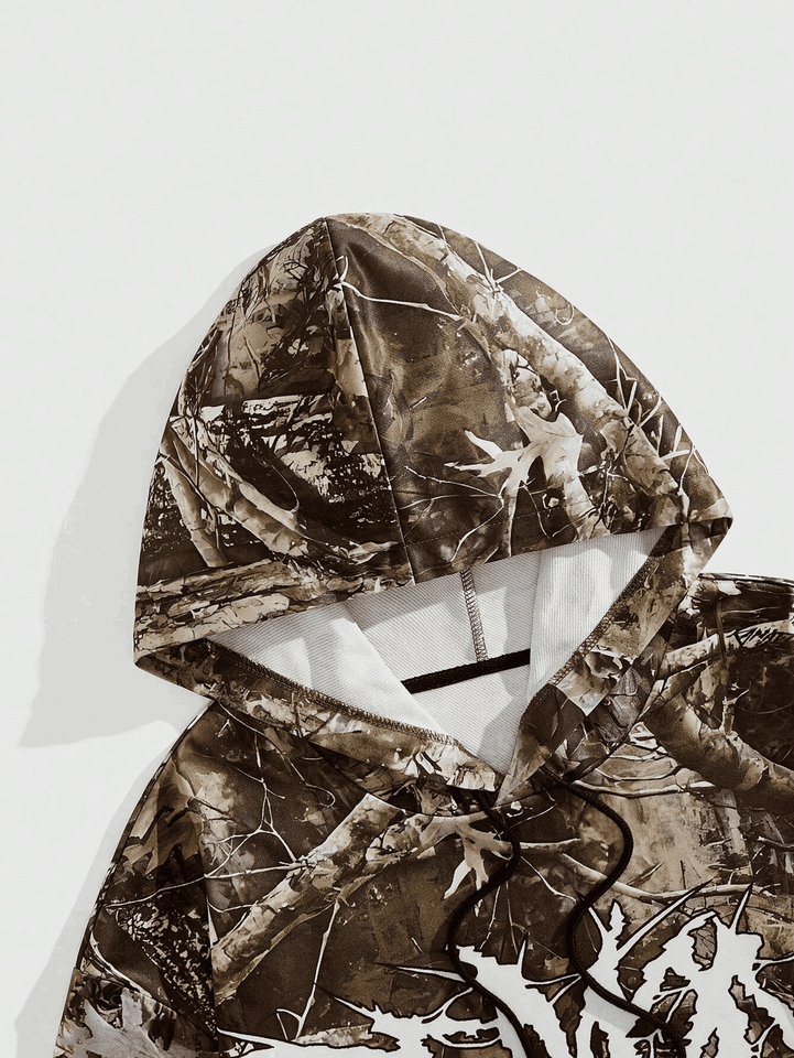 เสื้อฮู้ดผู้ชายพิมพ์ลายพรางป่าจริงสำหรับตั้งแคมป์ป่า