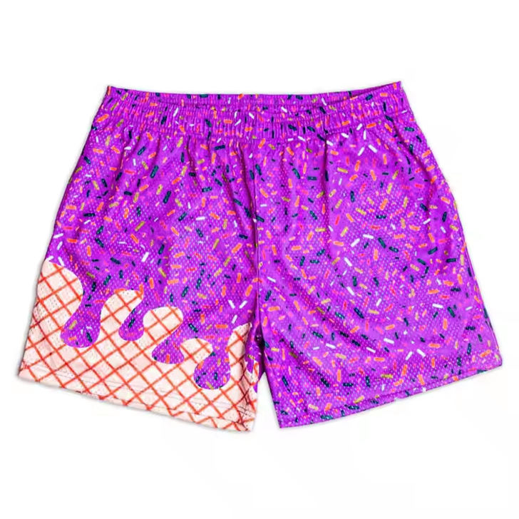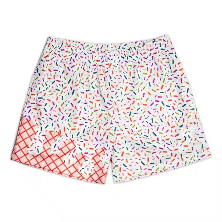 กางเกงขาสั้นผู้ชายแบบสวมใส่สบาย พิมพ์ลายแบบซับลิเมชั่น ผลิตตามสั่งขายส่ง เอวยางยืดพร้อมเชือกผูก แห้งเร็ว เหมาะสำหรับเล่นกีฬาชายหาด รับผลิตแบบ OEM