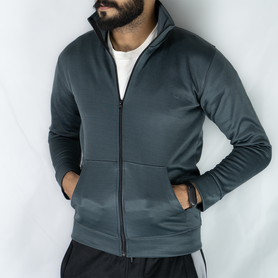 แจ็กเก็ตซิปเต็มตัวสำหรับผู้ชายเสื้อออกกำลังกายแบบลำลองผ้าโพลีเอสเตอร์ระบายอากาศ