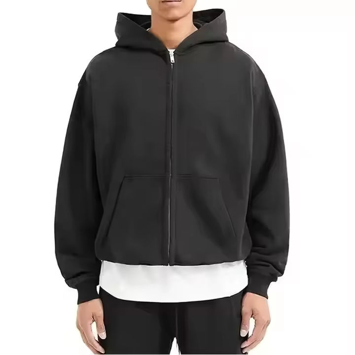 เสื้อฮู้ดซิปเต็มตัวผู้ชายแบบขายส่ง สั่งทำได้ สีพื้น เนื้อผ้าฟลีซ คุณภาพสูง สำหรับฤดูหนาว