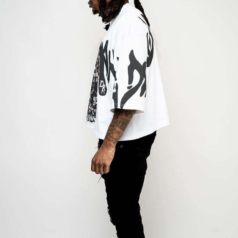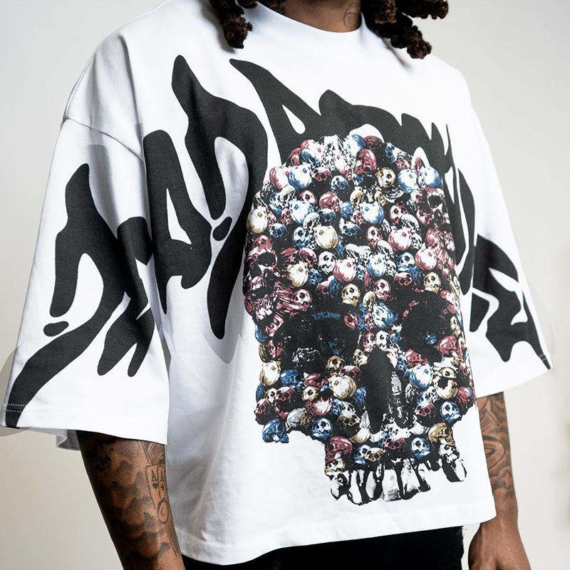 เสื้อยืดโอเวอร์ไซส์ผู้ชายผ้าฝ้ายสั่งทำขายส่ง คุณภาพสูง พิมพ์ลาย DTG ทรงบ็อกซี่ ครอป สไตล์ฮิปฮอป สตรีทแวร์ ไหล่ตก