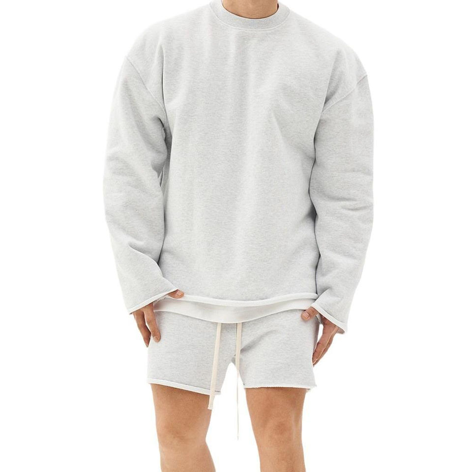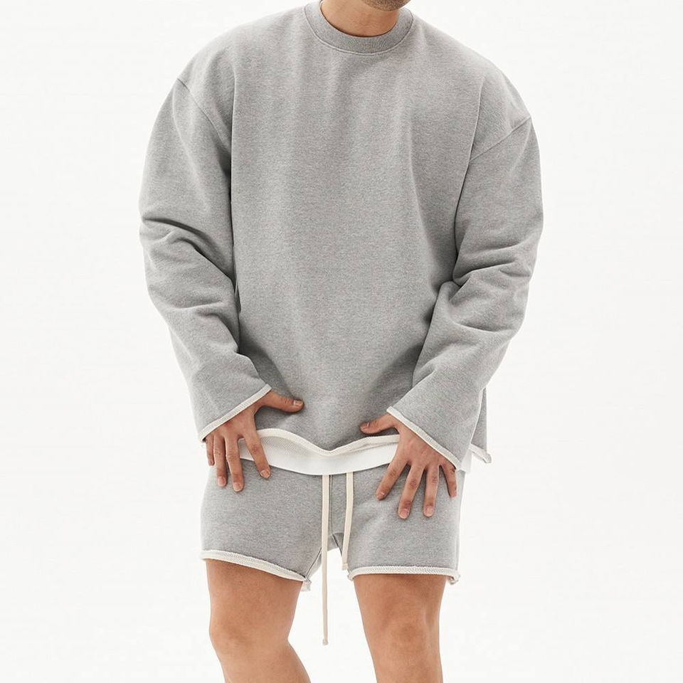 ชุดวอร์มแขนยาวของผู้ชายเสื้อสเวตเชิ้ตแบบสวมหัวสำหรับฤดูใบไม้ผลิผ้าคอตตอนผสมสีทึบออกแบบได้ตามต้องการ