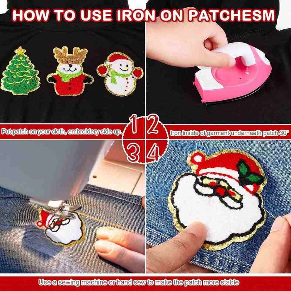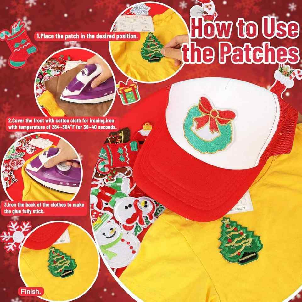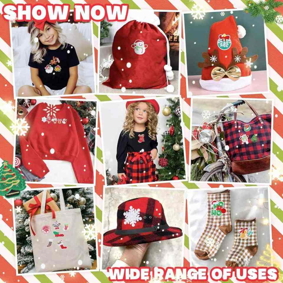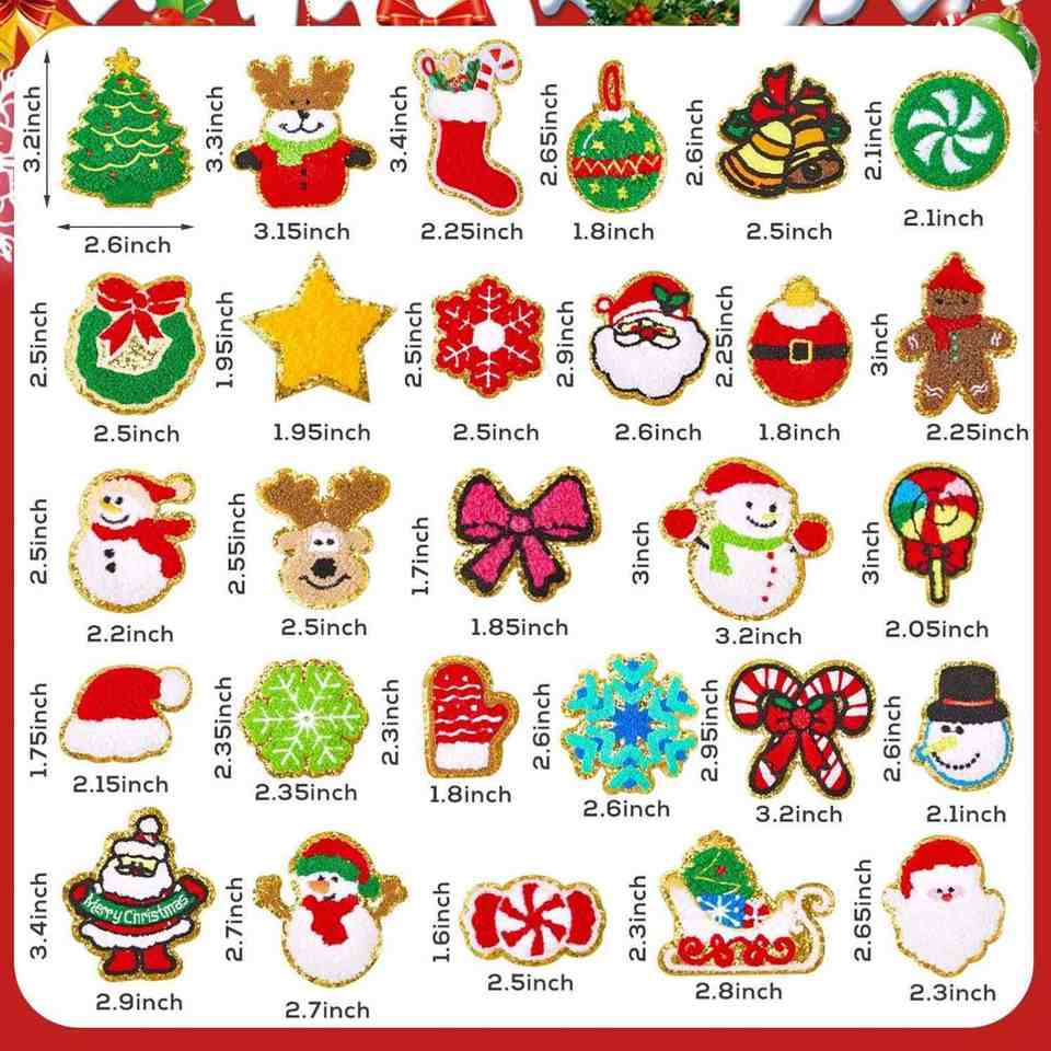 แพทช์ปักลายคริสต์มาสแบบขายส่ง ลายขนมปังขิง ซานต้า ต้นคริสต์มาส แบบรีดร้อนติดเสื้อผ้า