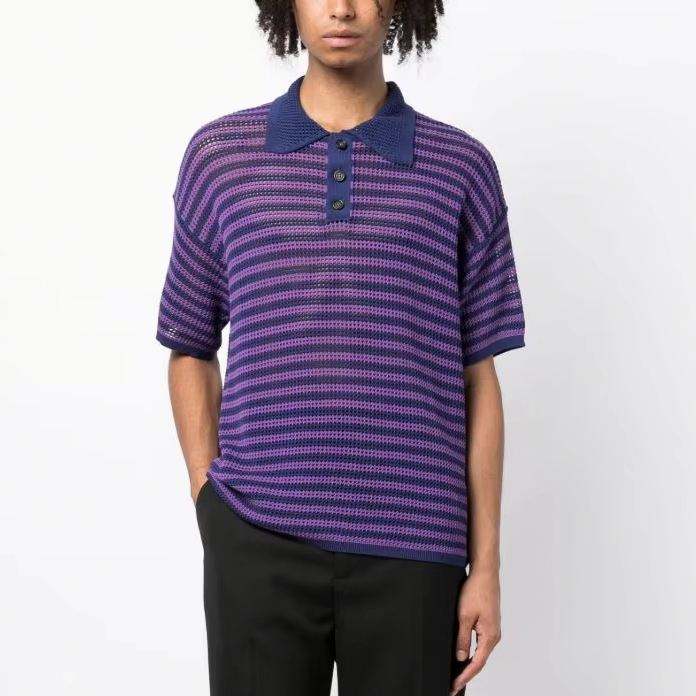 เสื้อยืดคอโปโลแขนสั้นผู้ชายแบบเปิดถักลายผ้าถักแบบมีตัวอย่างสำหรับฤดูร้อน