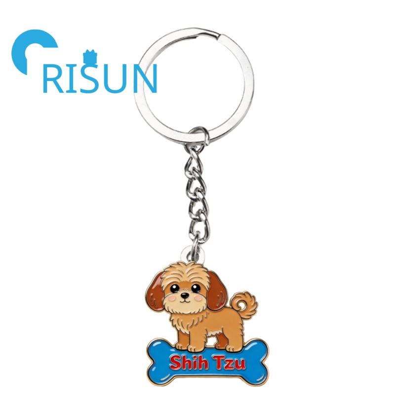 พวงกุญแจโลหะเคลือบสีแบบกำหนดเองขายส่ง ลายน่ารัก ลาซา อพโซ ชิทซู ปอร์ตูเกส วอเตอร์ ด็อก ชิทซู