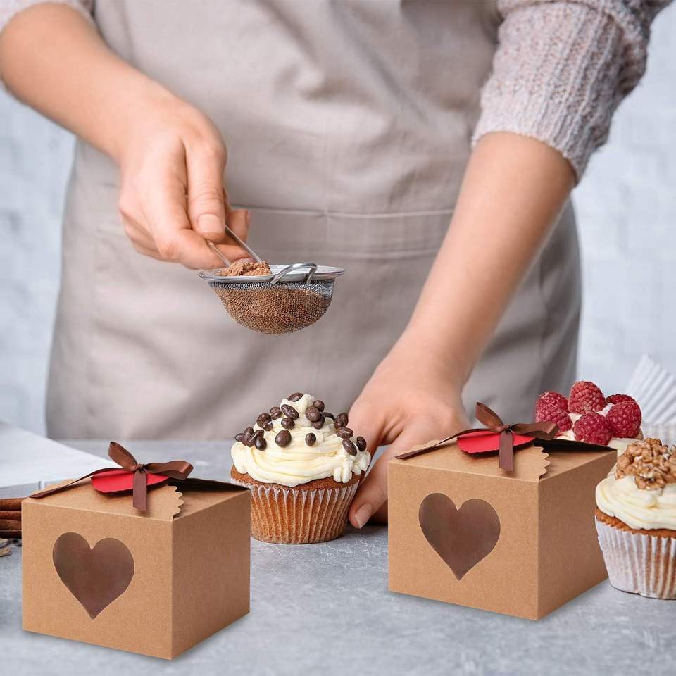กล่องกระดาษคราฟท์สำหรับบรรจุภัณฑ์ขนมหวานขนาดเล็กแบบขายส่ง พร้อมหน้าต่างใส สำหรับใส่คุกกี้ โดนัท มาการอง และเค้ก