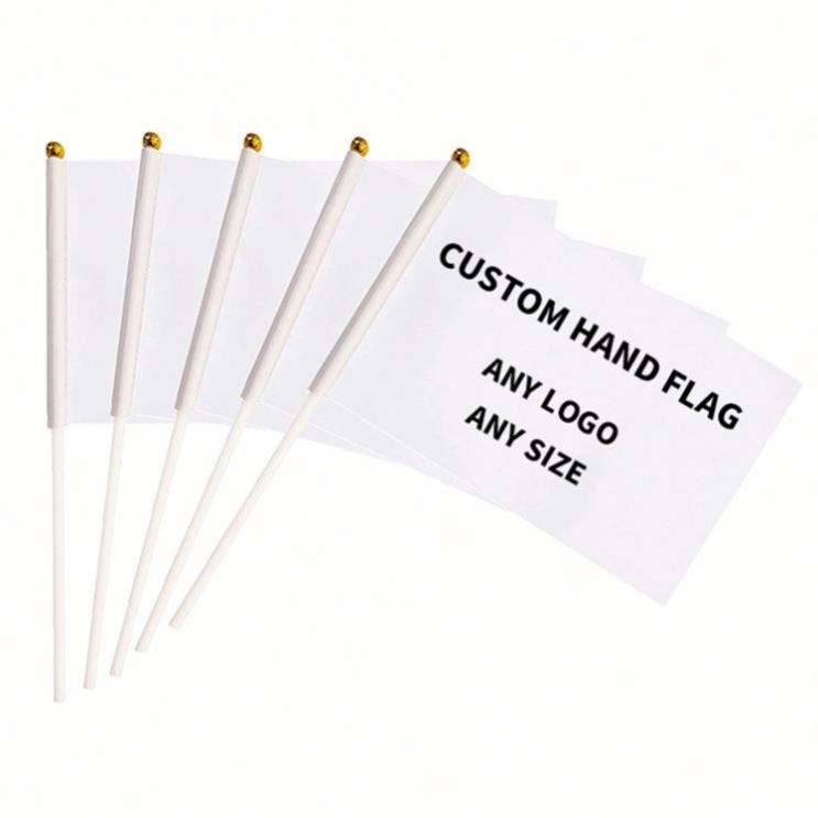 ธงมินิแบบขายส่งพร้อมเสาพลาสติก ธงมือถือแบบโบกสะบัดพร้อมออกแบบโลโก้ ธงมินิแบบสั่งทำส่วนตัว