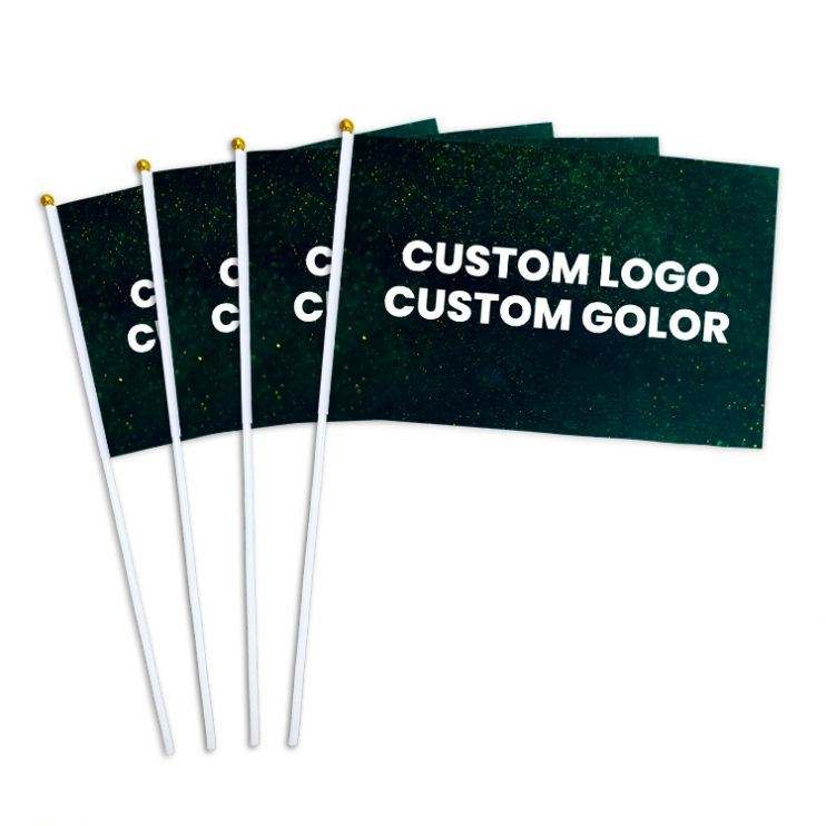 ธงมินิแบบขายส่งพร้อมเสาพลาสติก ธงมือถือแบบโบกสะบัดพร้อมออกแบบโลโก้ ธงมินิแบบสั่งทำส่วนตัว