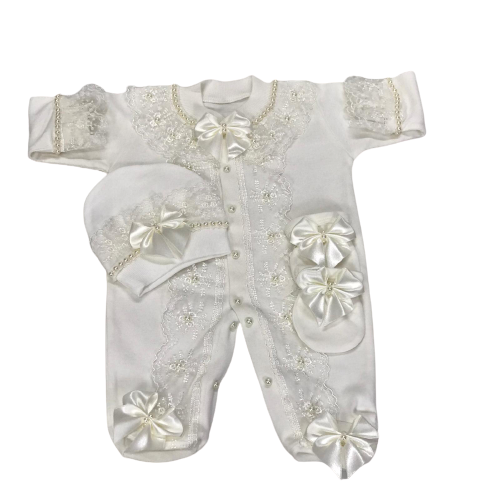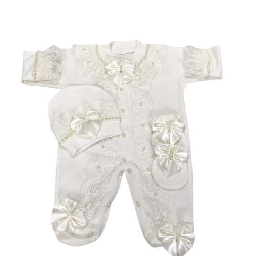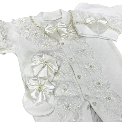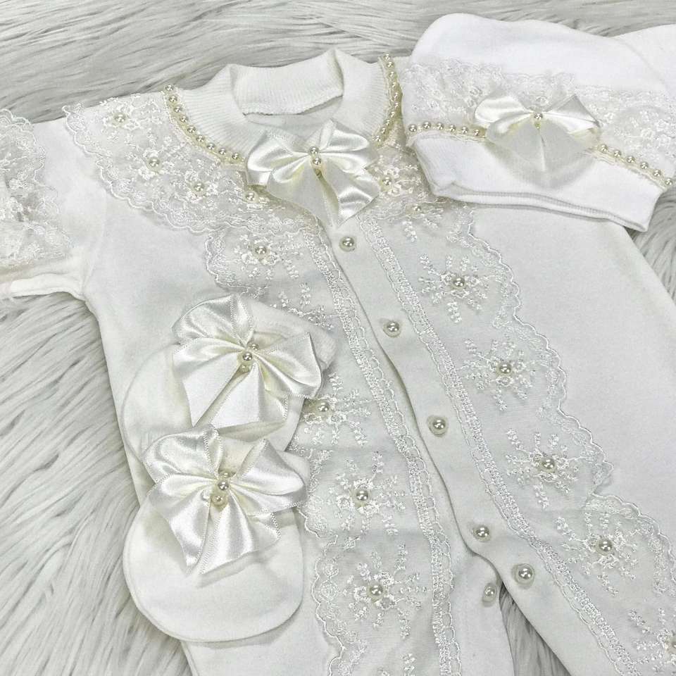 ชุดรอมเปอร์เด็กทารกแรกเกิด,แขนยาวไม้ไผ่ชั้นหนึ่งลูกไม้สีขาวดีไซน์ใหม่หรูหรากำหนดได้เอง