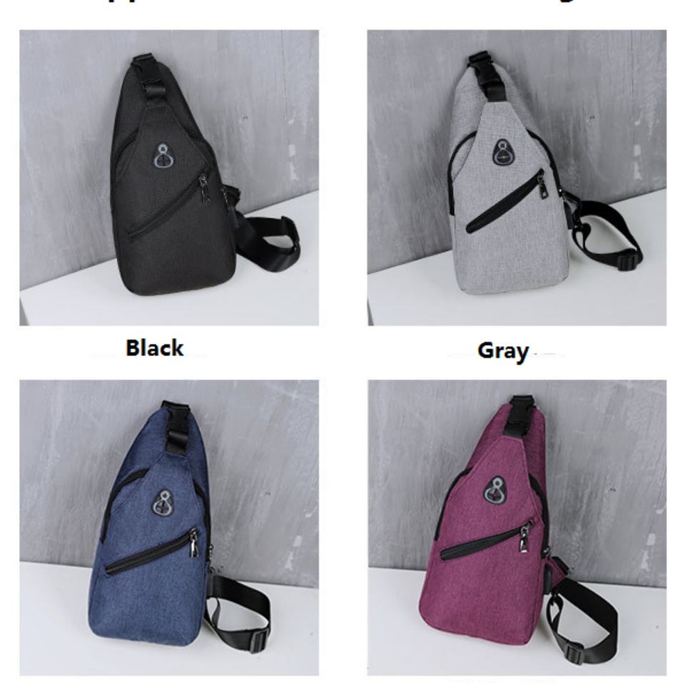 กระเป๋าคาดอกผ้าใบอเนกประสงค์สั่งทำขายส่ง พร้อมช่องเสียบ USB สำหรับชาร์จและเก็บหูฟัง กันน้ำ