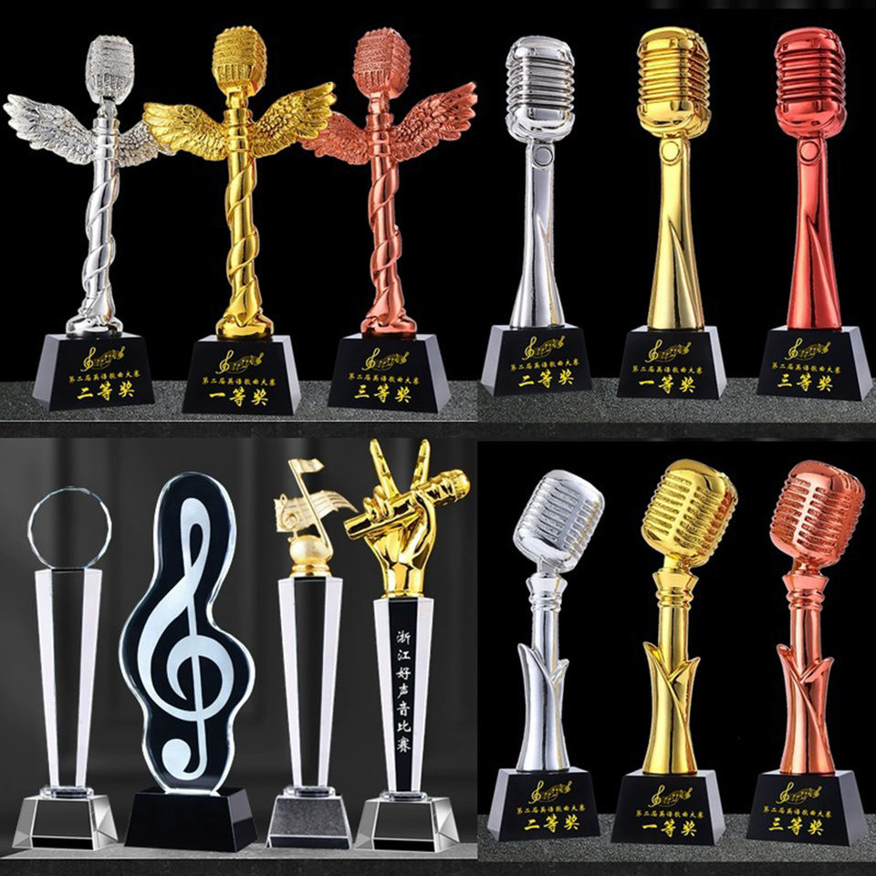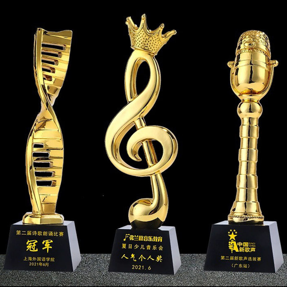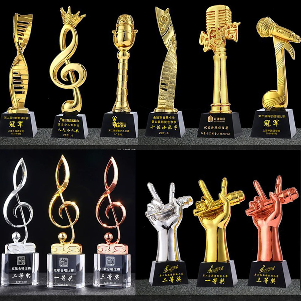 Wholesale Custom Music Metal Crystal Resin Musical Note Mic Singing Piano Violin Competition Award Singer Trophies Piano Medal