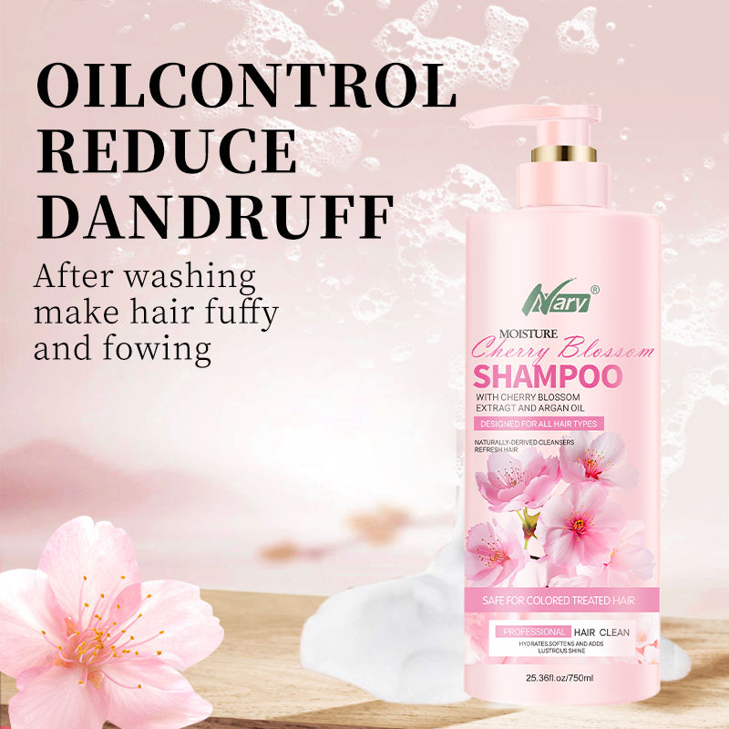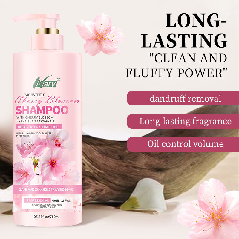 แชมพูสมุนไพรซากุระสูตรธรรมชาติแบบขายส่ง กลิ่นหอมติดทนนาน ควบคุมความมัน ลดรังแค บำรุงผมแห้งเสียให้นุ่มสลวย