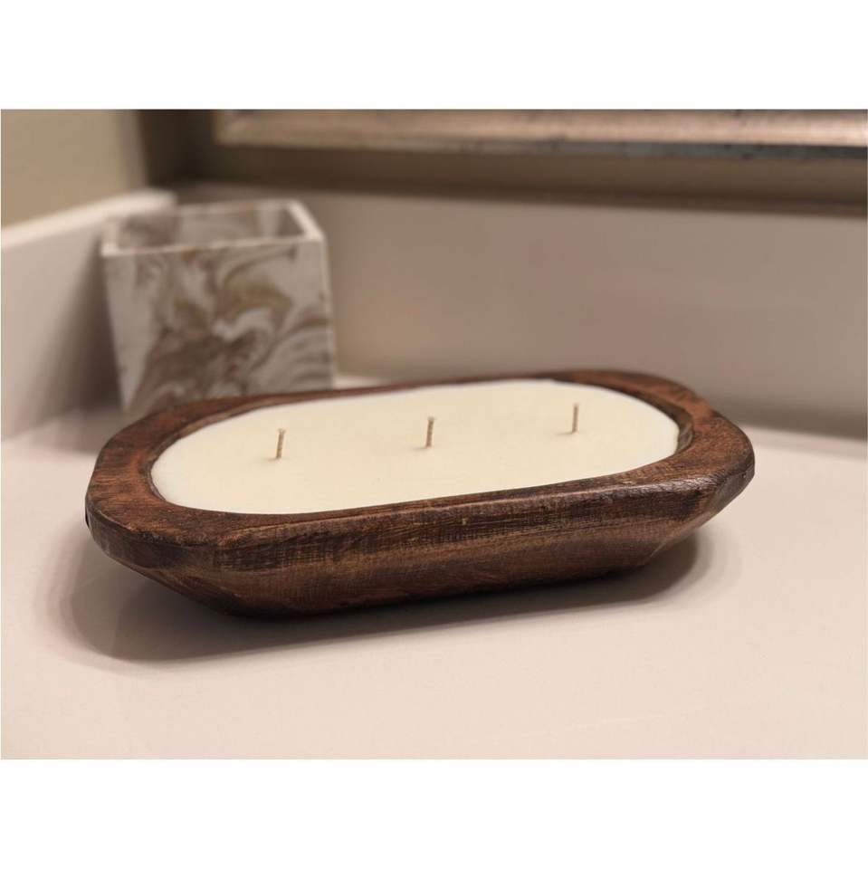 ชามแป้งไม้ธรรมชาติแบบกำหนดเองสำหรับเทียน6-wick ชามใส่เทียนความจุขนาดใหญ่