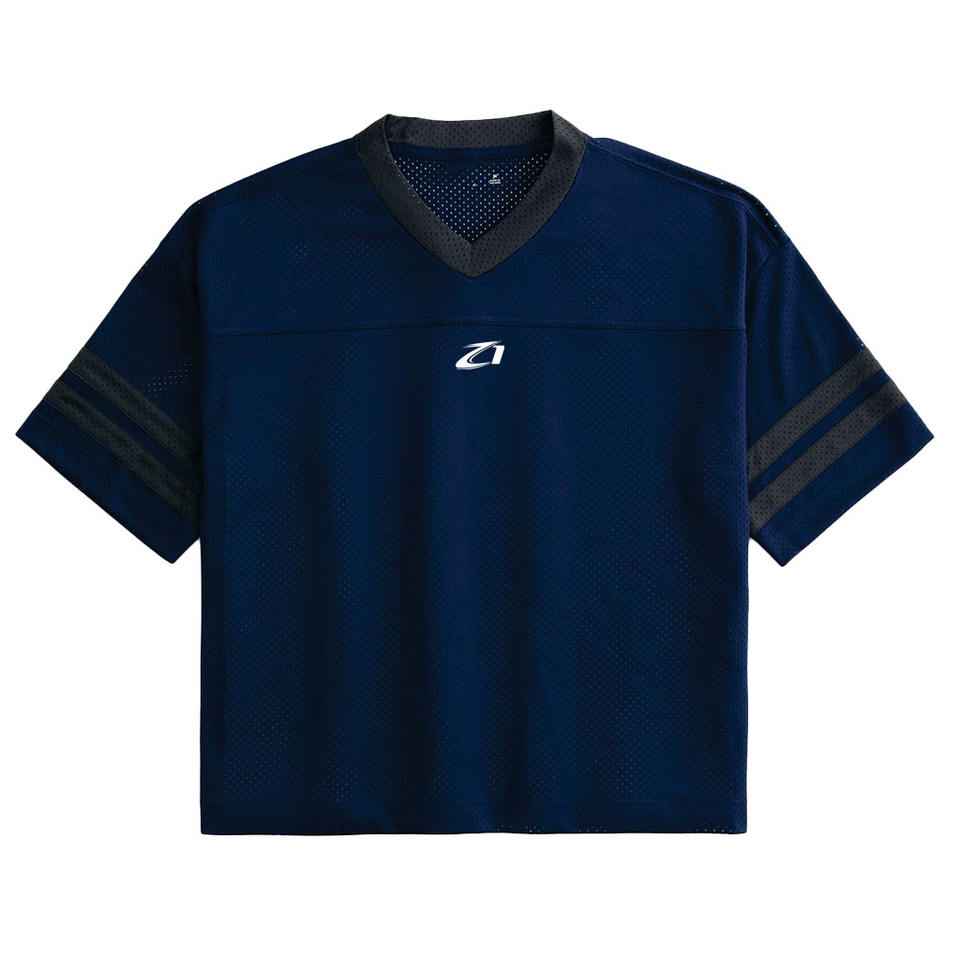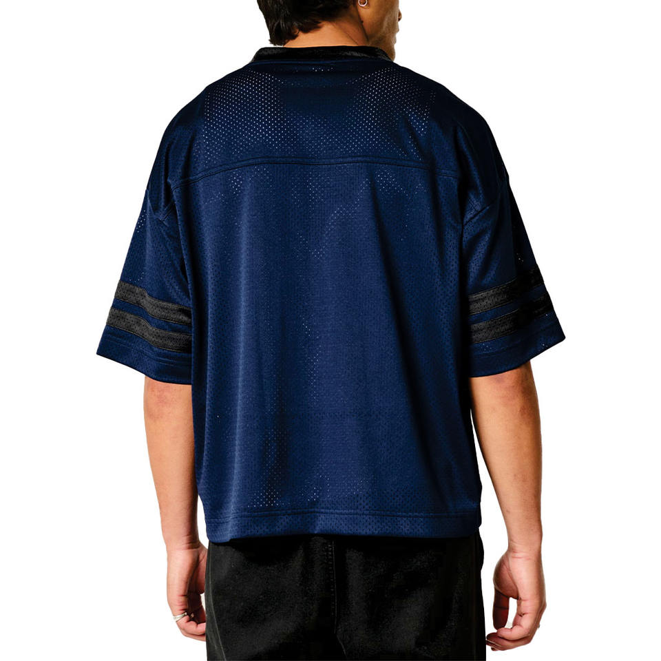 เสื้อเจอร์ซีย์อเมริกันฟุตบอลตาข่ายสีน้ำเงินกรมท่าสั่งทำขายส่ง เสื้อผ้าสตรีทแวร์ขนาดใหญ่พิเศษ เสื้อยืดตาข่ายแบบยูนิเซ็กซ์ บริการ OEM สหรัฐอเมริกา