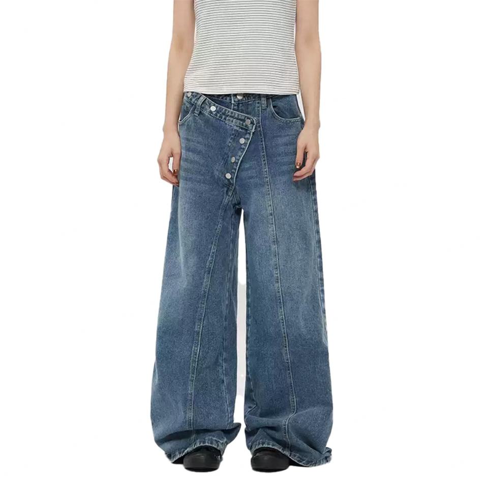 Wholesale Custom New Fashion Blue Washed Jeans for Women 100% Cotton High Quality Fabric Y2K Baggy Women's Denim