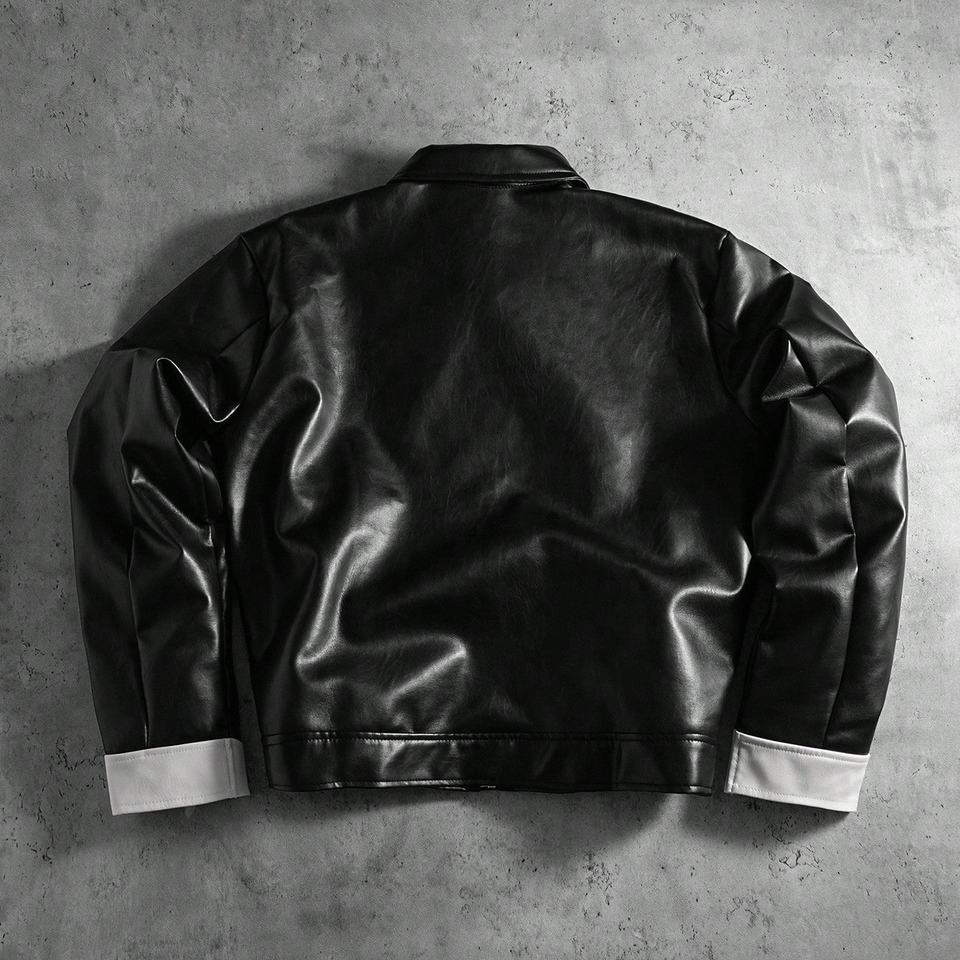แจ็คเก็ตหนังทรงบ็อกซี่แบบครอป ซิปหน้า สไตล์วินเทจ แฟชั่นผู้ชาย ระบายอากาศ กันลม สีสันใหม่ รับผลิตตามสั่ง ขายส่ง