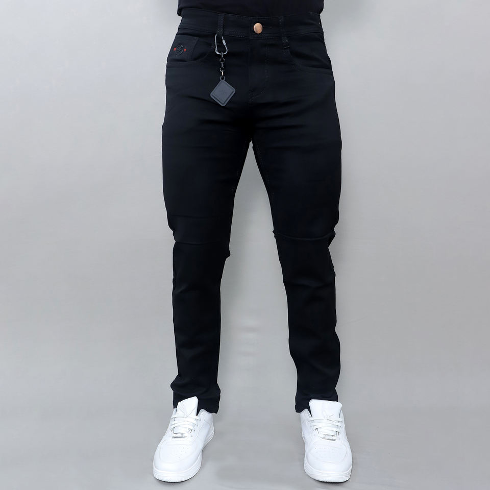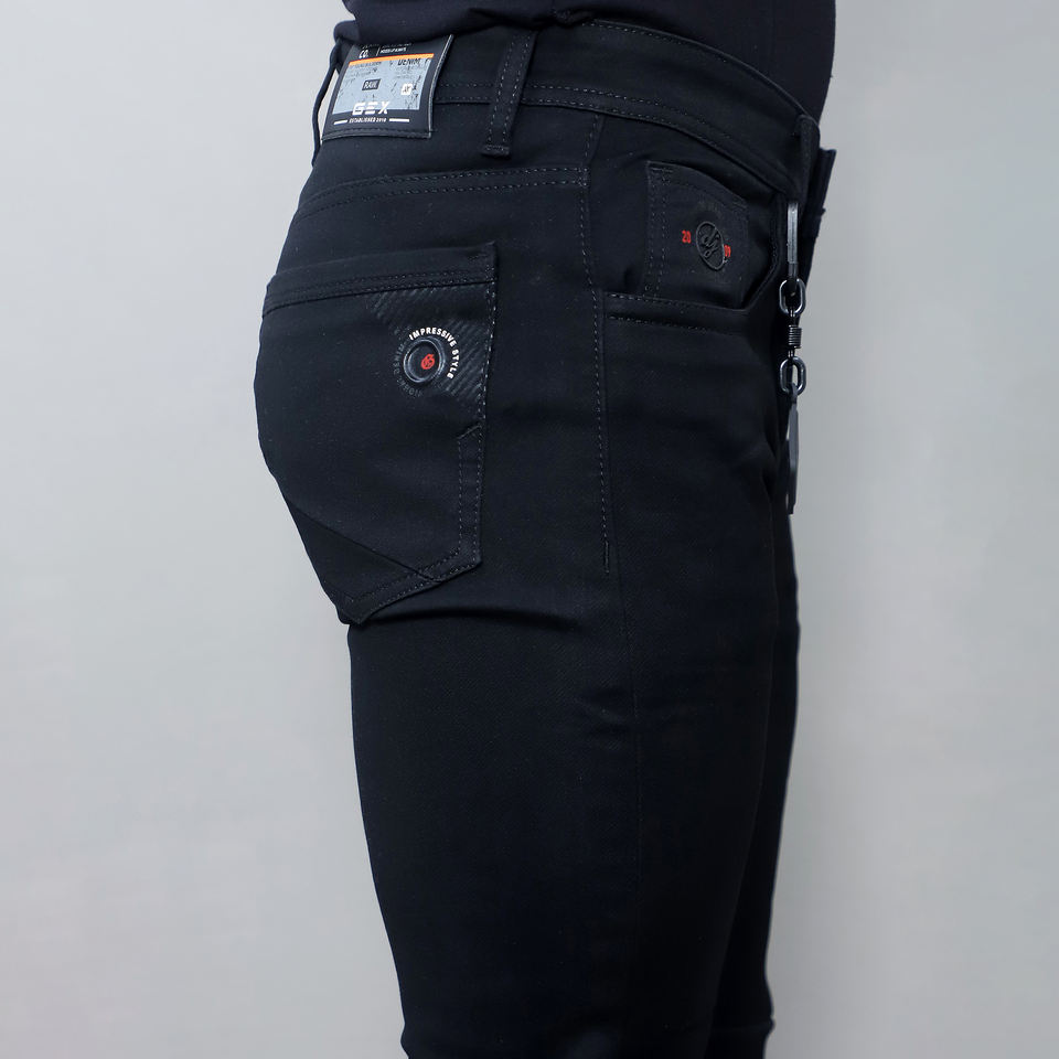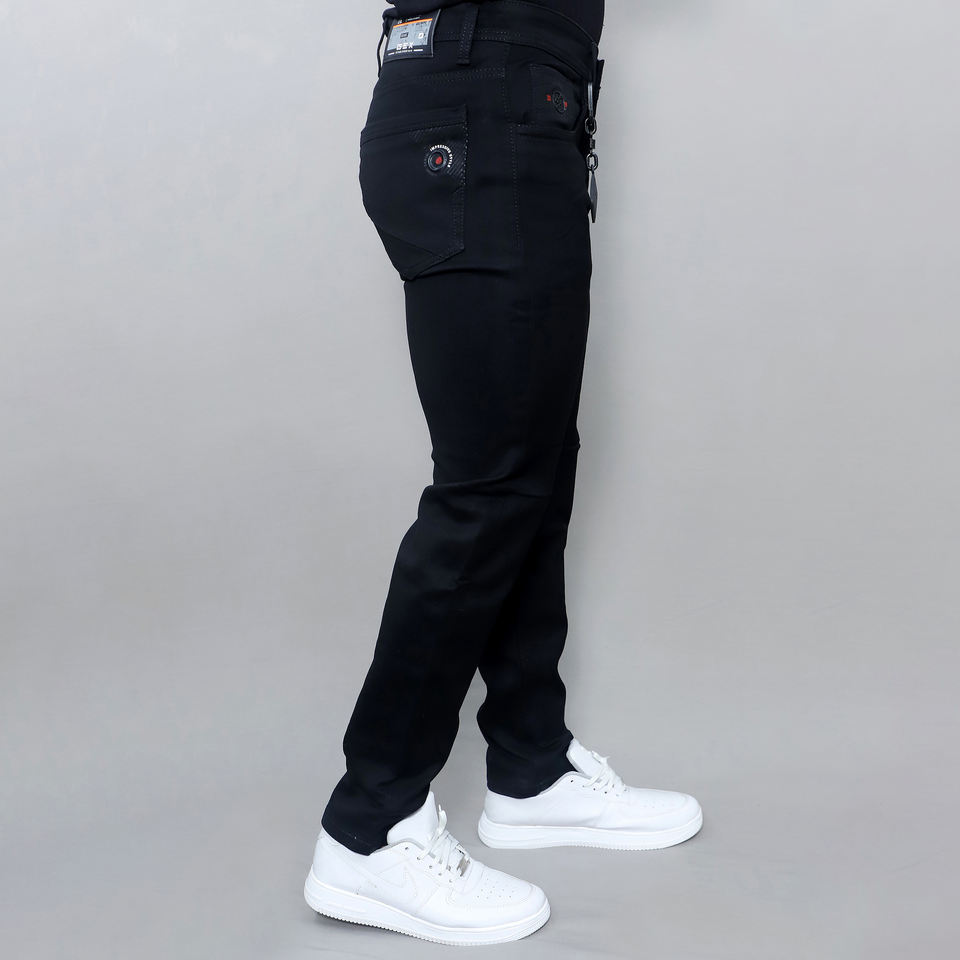 กางเกงยีนส์สีดำทรงกลางเอวผู้ชายแบบยืดได้รุ่นใหม่สั่งทำขายส่ง