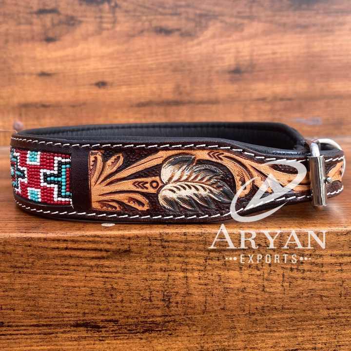 Genuine Leather Beaded Dog Collar