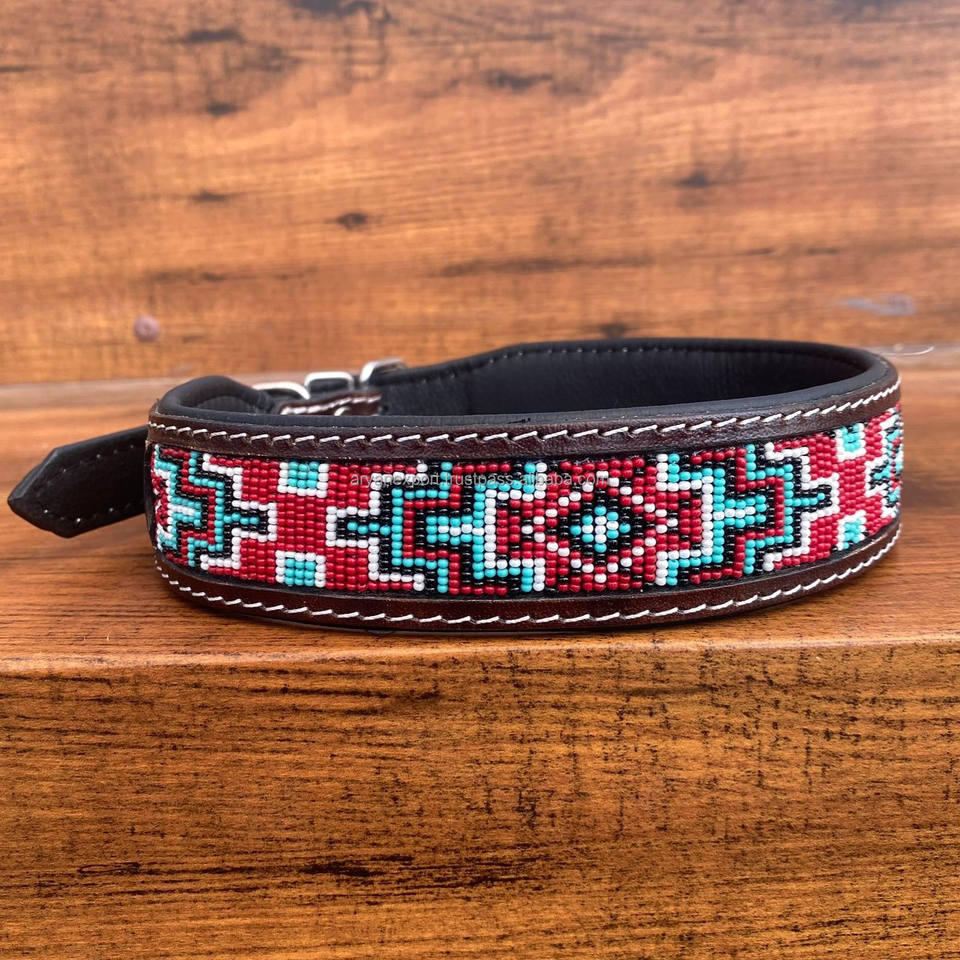 Product Name:Genuine Leather Beaded Dog Collar