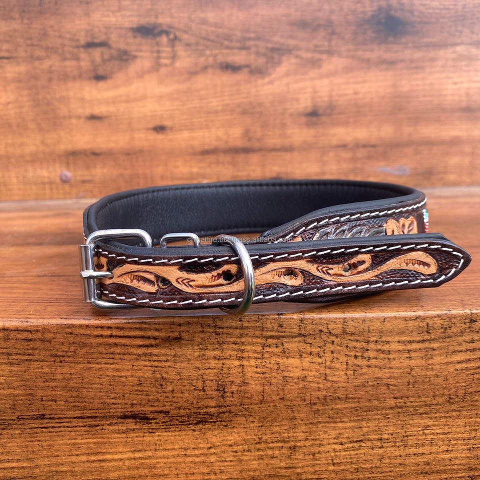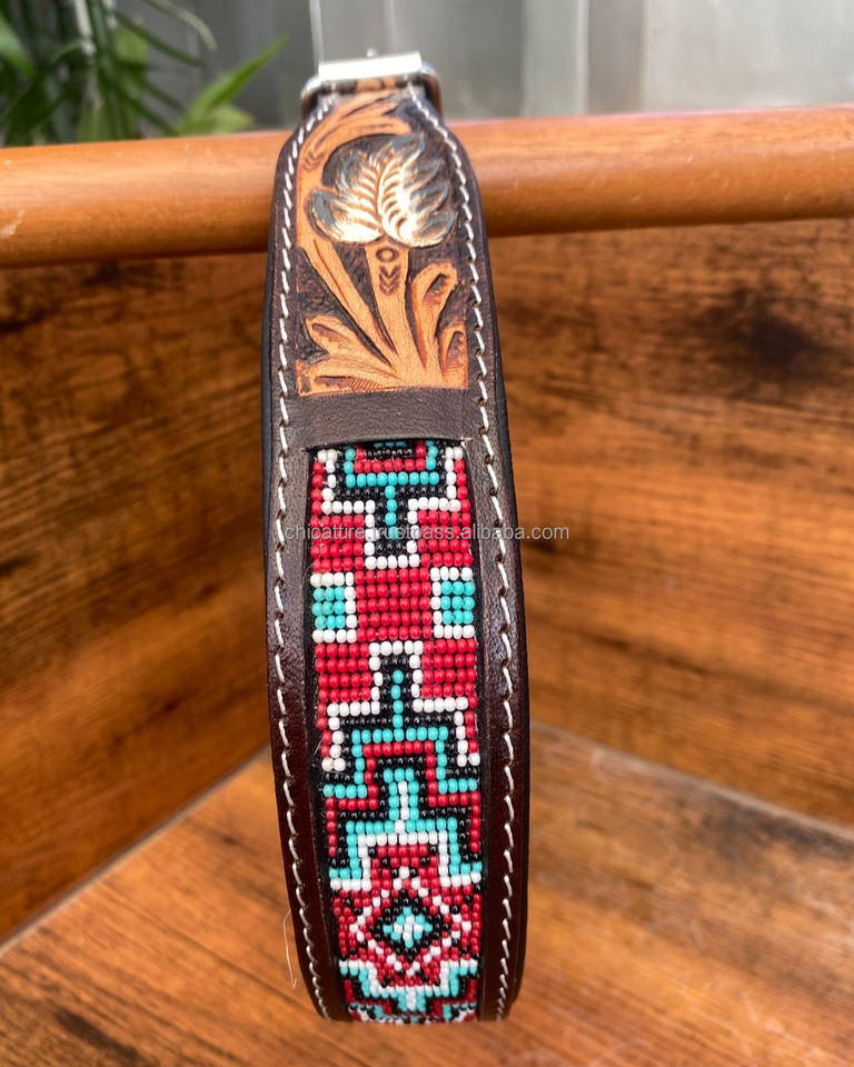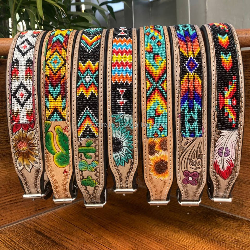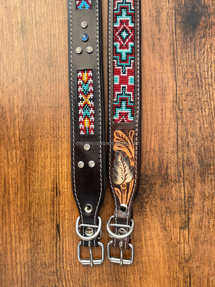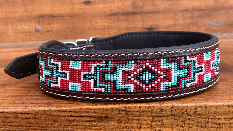ปลอกคอสุนัขลูกปัดหนังแท้