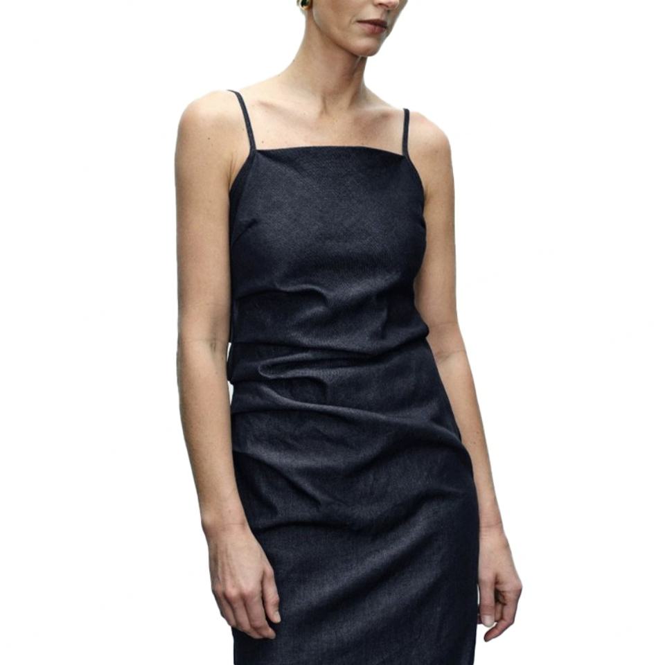 เดรสยีนส์ทรงสลิปสำหรับผู้หญิง รุ่นใหม่สำหรับฤดูร้อน ขายส่ง แบบสั่งทำได้ แฟชั่นวินเทจ ทรงเข้ารูป ไม่มีแขน จับจีบ