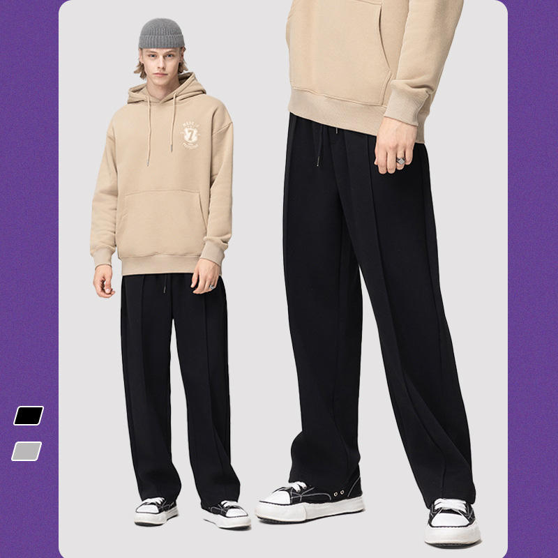 กางเกงขายส่งแบบสั่งทำ OEM ปักลาย เป็นมิตรกับสิ่งแวดล้อม ระบายอากาศได้ดี สไตล์ลำลอง ทรงตรง แฟชั่นผู้ชาย สีพื้น ผ้าหนา