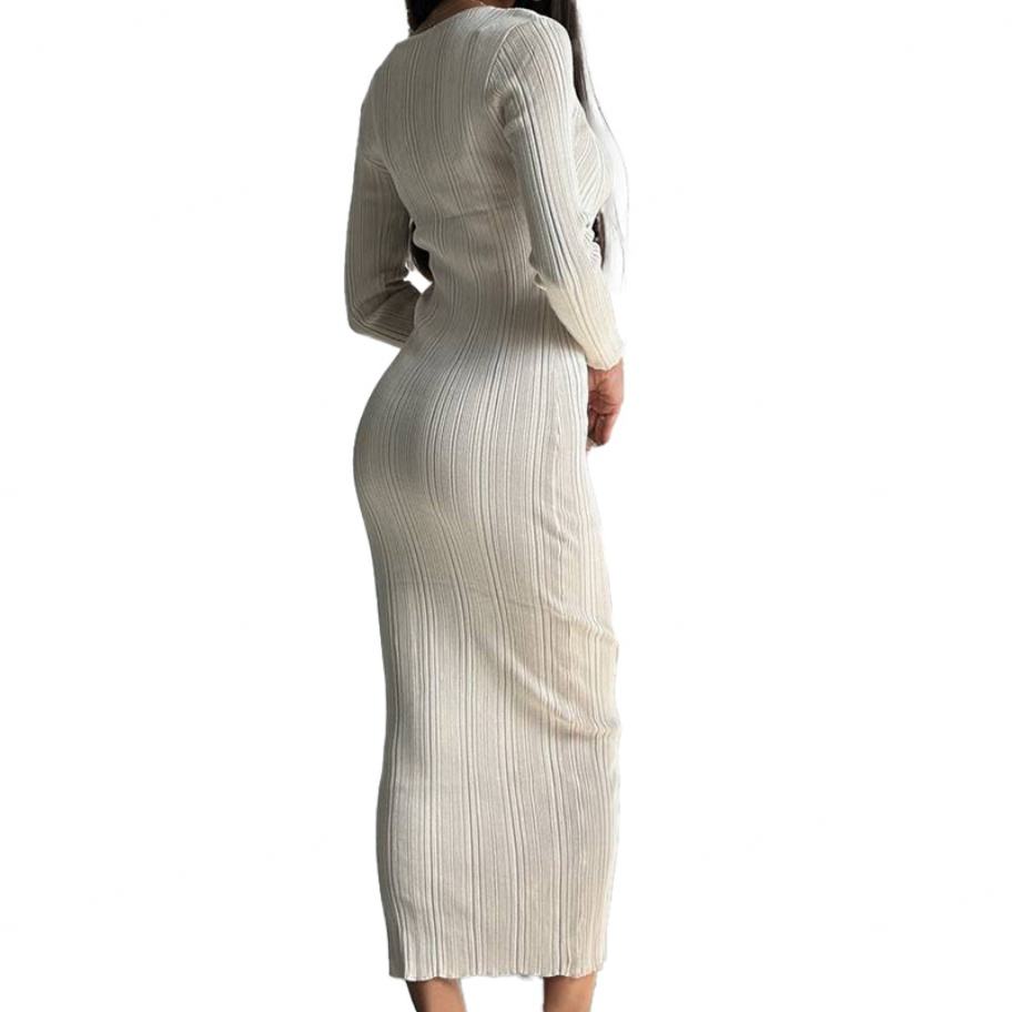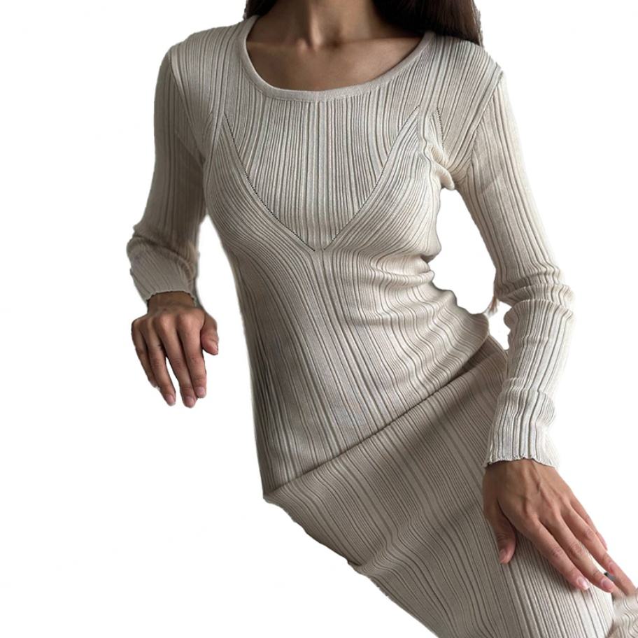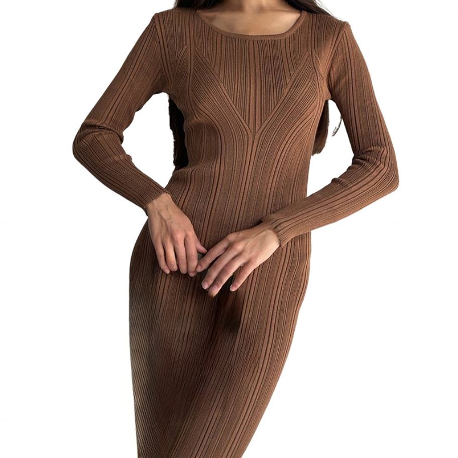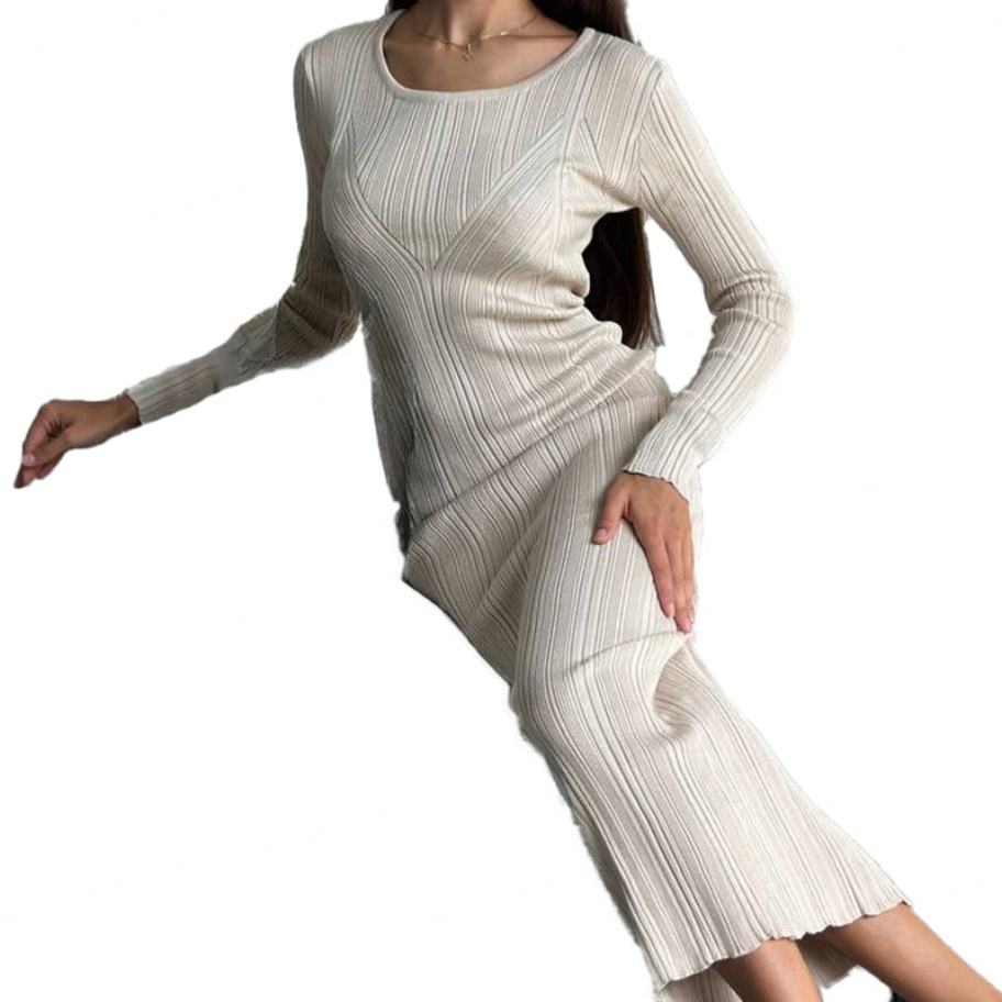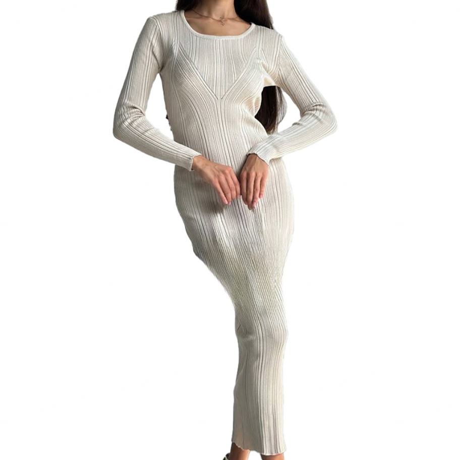 เดรสยาวผู้หญิงคุณภาพสูงแบบขายส่ง รับผลิตตามสั่ง (OEM) ดีไซน์เรียบหรู สีพื้น ผ้าถัก ทรงเข้ารูป แขนยาว