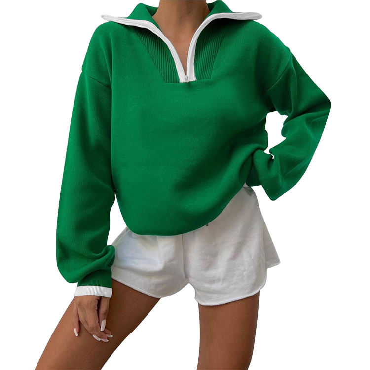 เสื้อสเวตเตอร์ไหมพรมอะคริลิกคอตตอนแบบครึ่งซิป สไตล์วาร์ซิตี้ อัลฟาคาปา AKA สำหรับผู้หญิง รับผลิตตามสั่งแบบขายส่ง OEM ODM