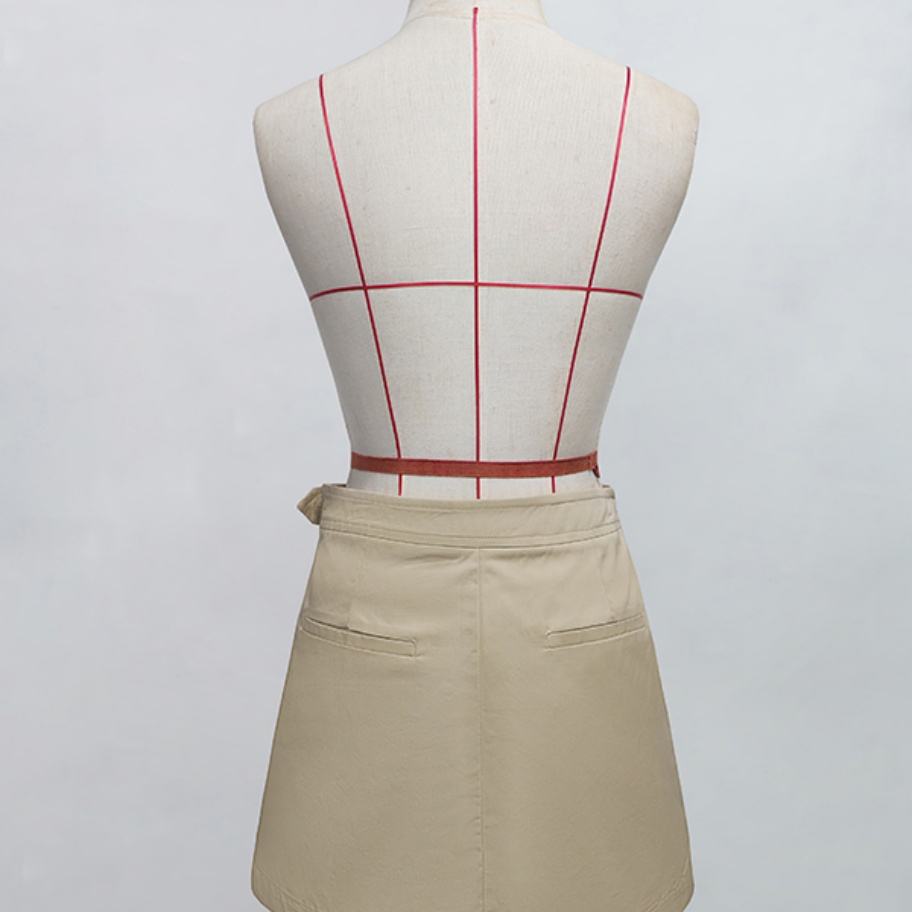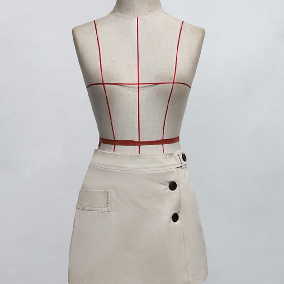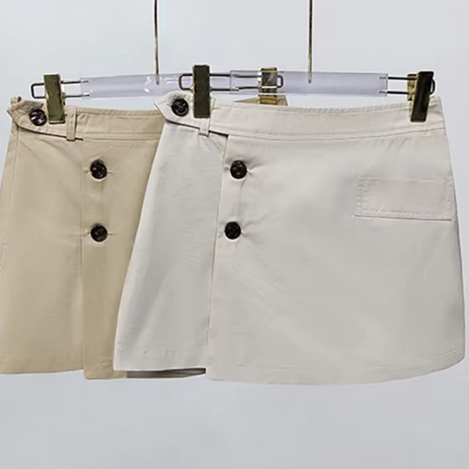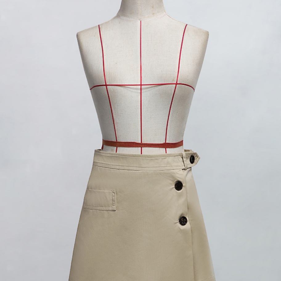กระโปรงทรงเอแฟชั่นคุณภาพสูงแบบขายส่ง รับผลิตตามแบบ OEM/ODM สีพื้น แต่งกระเป๋าติดกระดุมแถวเดียว