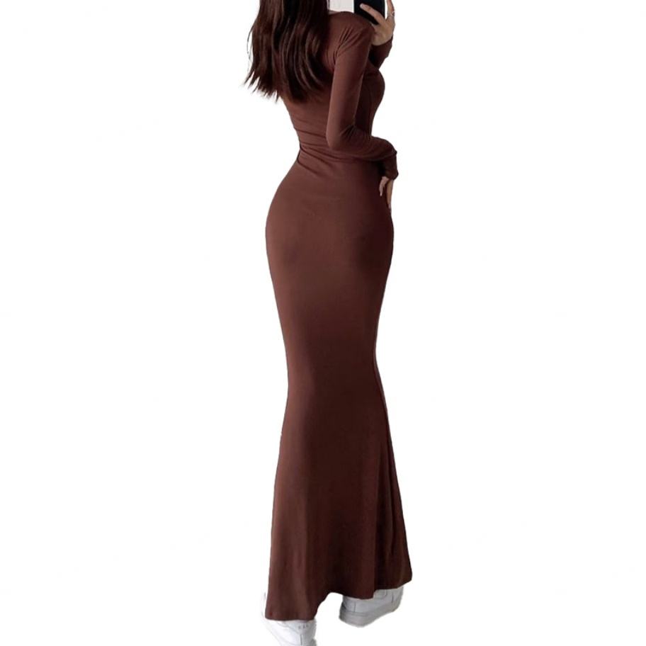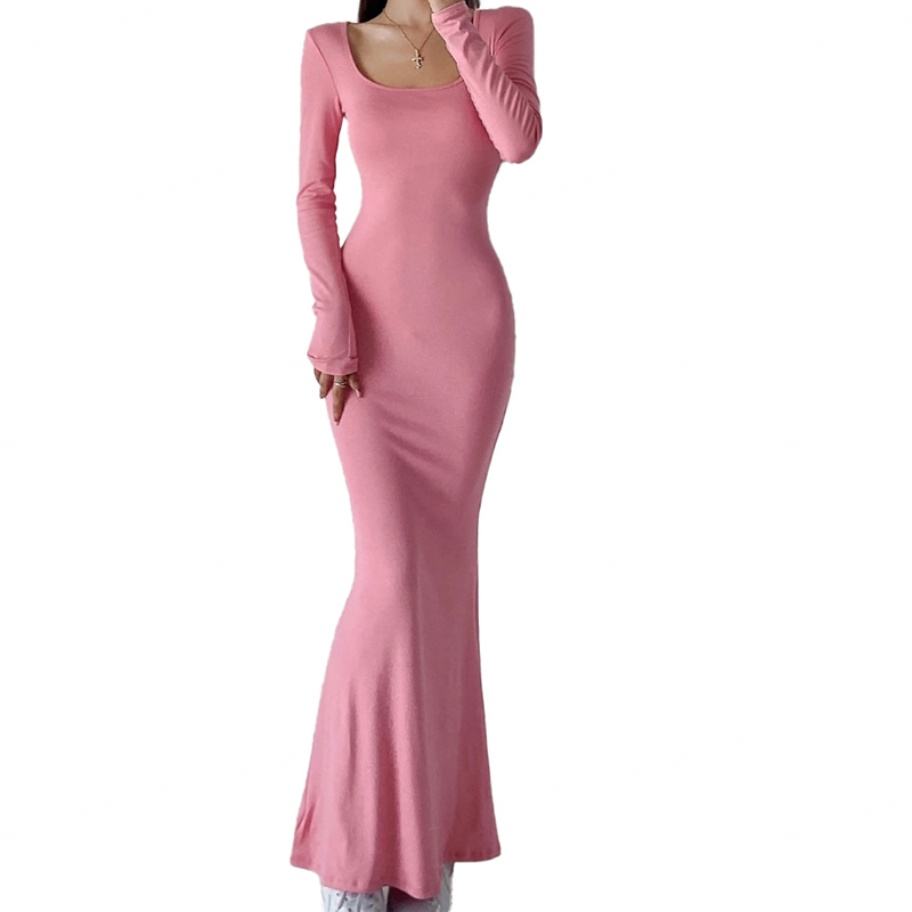 เดรสยาวทรงตรง คอเหลี่ยม แขนยาว ผ้าสีพื้น สำหรับผู้หญิง สไตล์ลำลอง เซ็กซี่ เหมาะสำหรับใส่ไปทำงาน รับผลิตตามสั่ง ขายส่ง คุณภาพสูง รับผลิตแบบ OEM ODM
