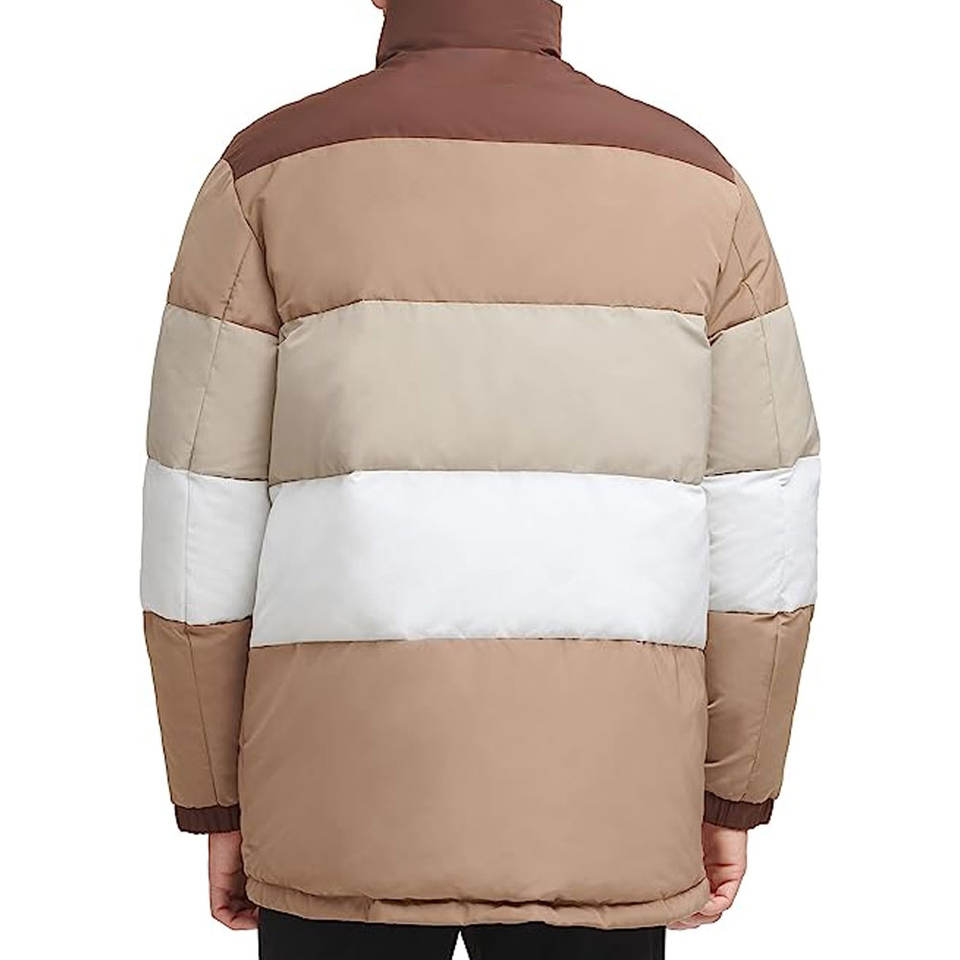 เสื้อแจ็คเก็ตพัฟเฟอร์ขนสัตว์บุผ้าสำหรับผู้ชาย พิมพ์ลายตามสั่ง OEM คอตั้ง กันหนาว ระบายอากาศได้ดี กันลม ดีไซน์บุฟองน้ำ บริการ OEM
