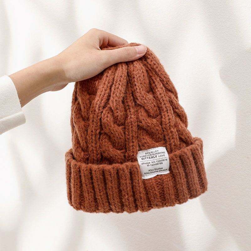 Wholesale Custom Organic Cotton,Wool,Merino Knitted Beanie Hat With Leather Patch